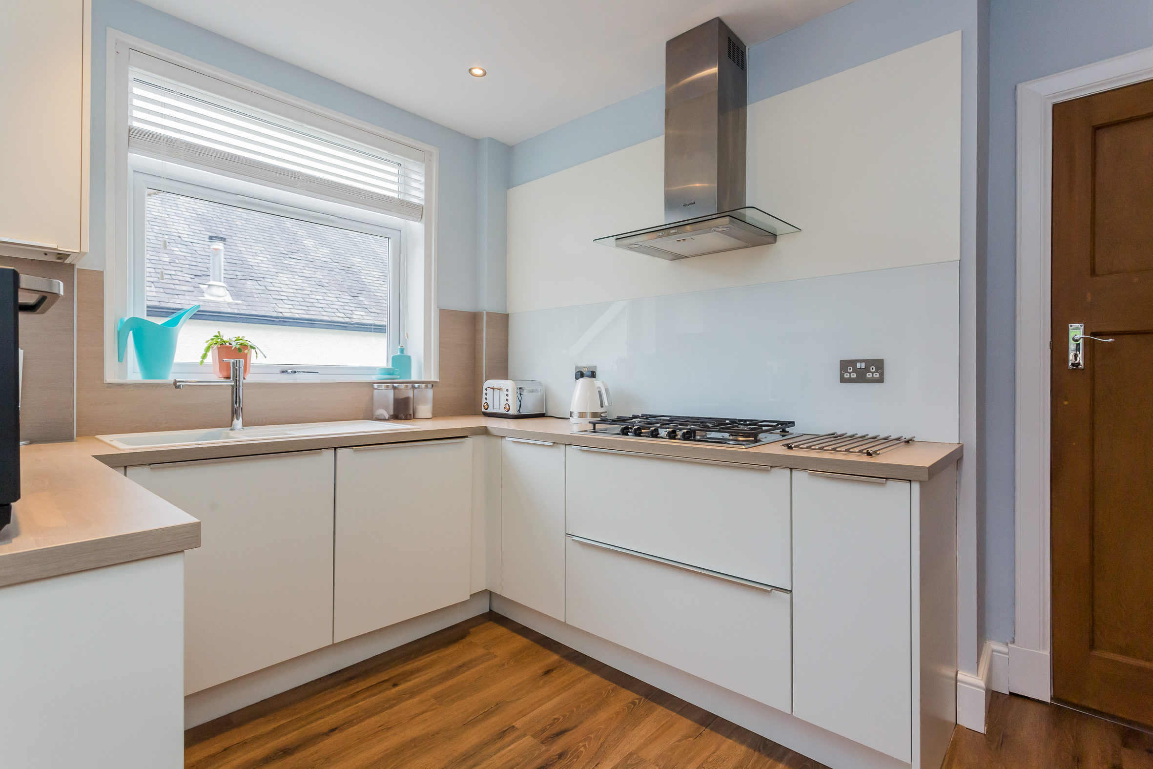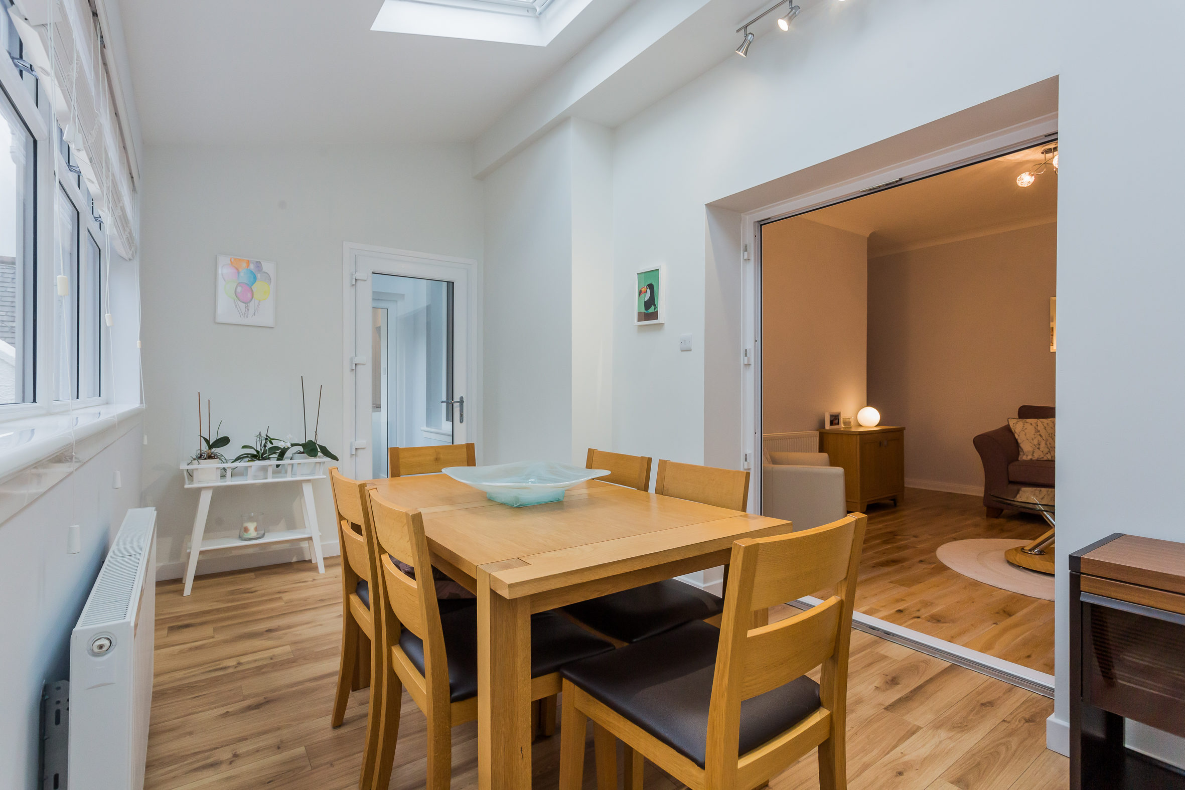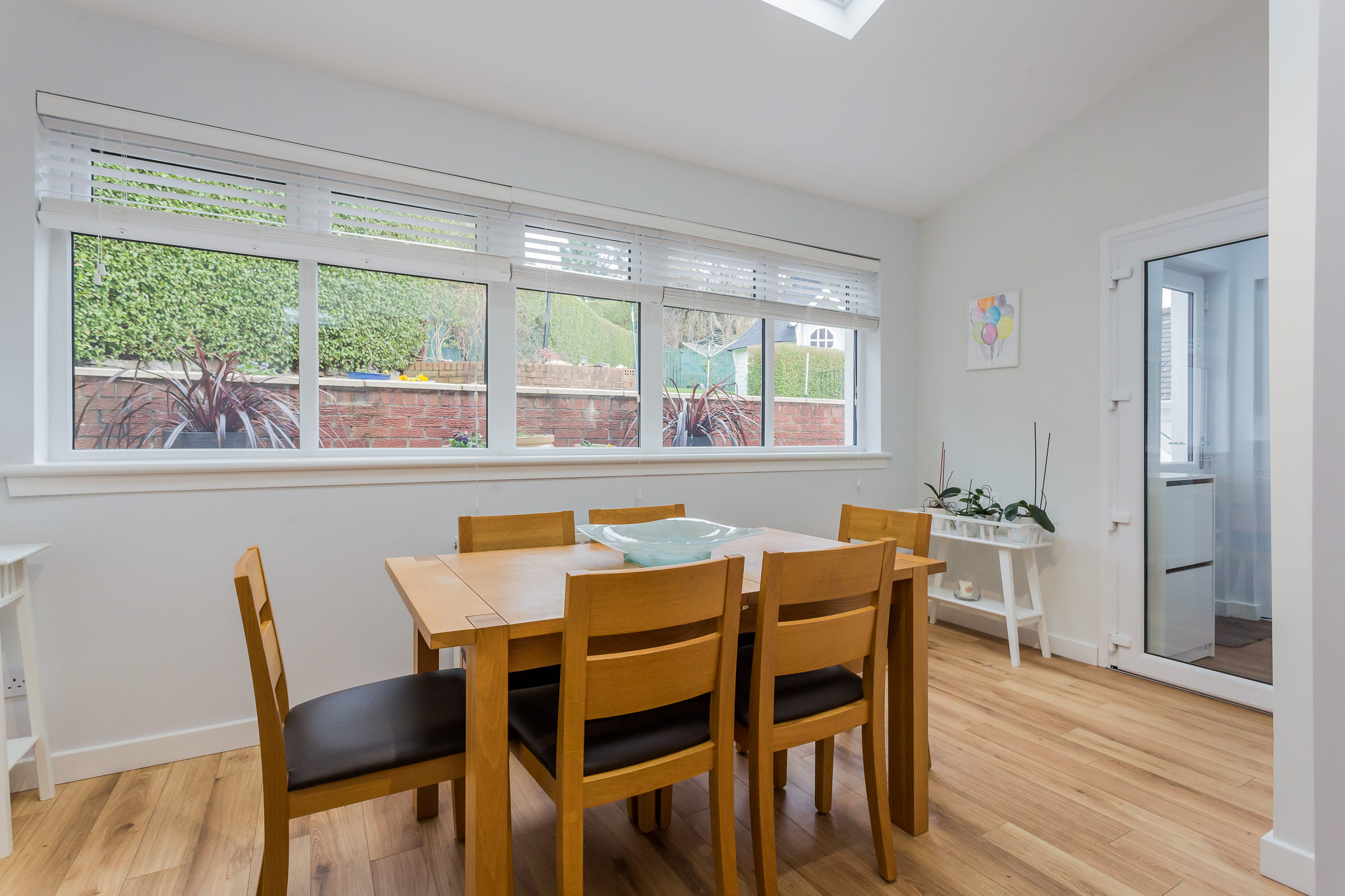 The entrance vestibule opens to the bright, welcoming reception hallway. The principal living room is at the front of the property and has a bay window, gas fire and fabulous view. There is a sitting room which is a warm and inviting space. Double doors lead to the dining room at the rear which could easily be used as a garden room overlooking the rear gardens. Skylight windows flood this space with light. There is a stylish, modern kitchen with a selection of fitted storage units (including a space saving larder) and good quality appliances which include oven, hob, dishwasher, washing machine and fridge/freezer. On the ground level there is a sleek, shower room which is tiled and has a three-piece suite. Bedroom one is also on the ground floor and is an elegant, bay windowed room to front of the property with fitted wardrobes. The family room offers flexible use and has a stair to the upper level. There are two further double bedrooms on the upper floor which both have dormer windows. The home office/bedroom 4 is also on this floor and has a stunning view. The bathroom completes the accommodation and has a four-piece suite and skylight window.