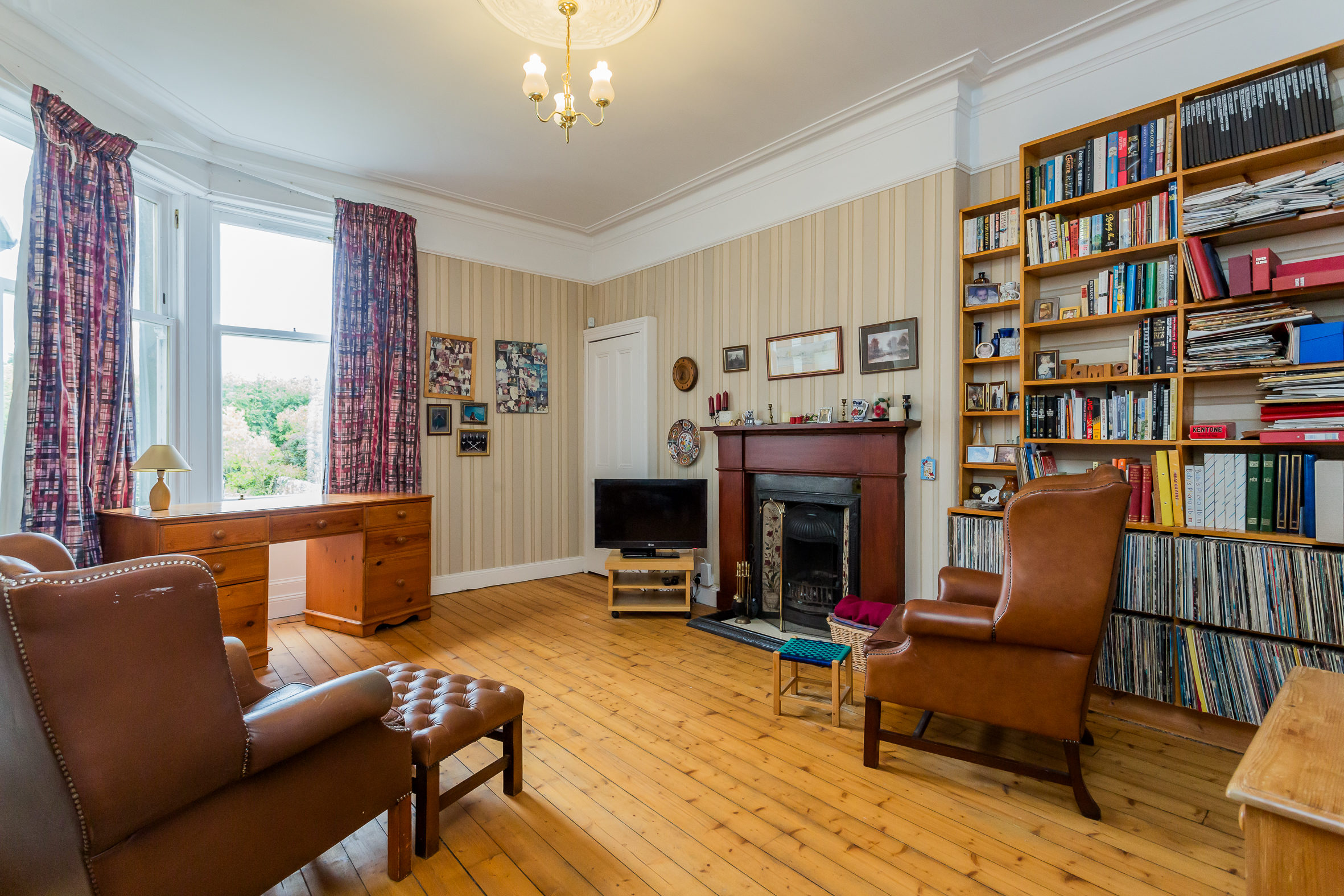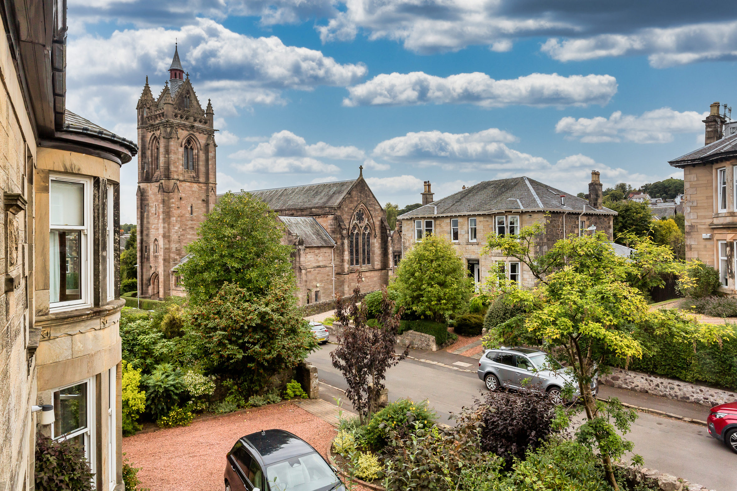 The period staircase leads to the first floor where there are four double bedrooms, a shower room and a family bathroom. The principal bedroom mirrors the floor below with its ‘Oriel’ window and views to the historical St Columba’s church. A pull-down ladder gives access to a fantastic attic that has power & light as well as natural light via three separate Velux windows.