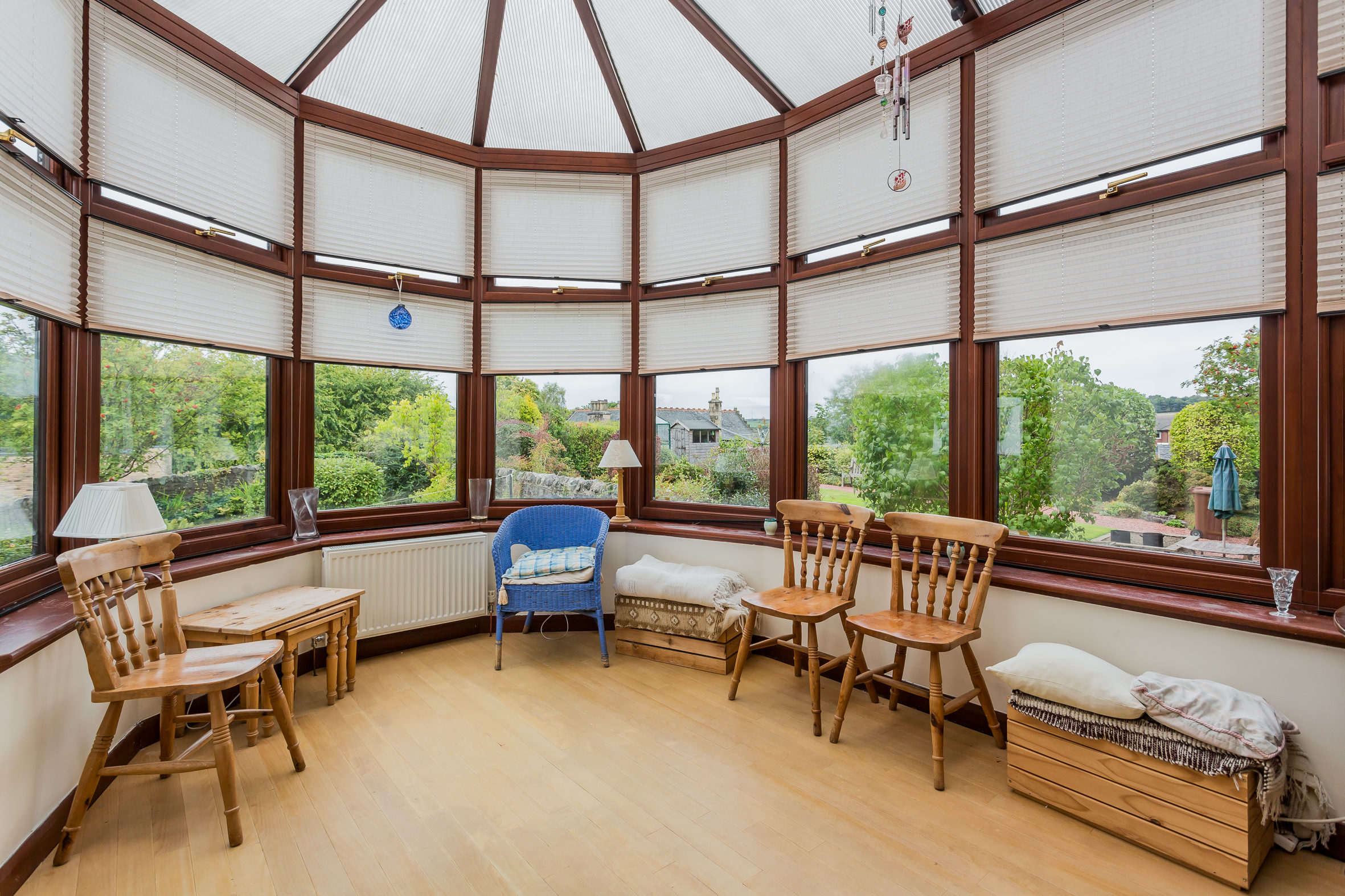 The stunning rear gardens enjoy a south facing orientation mainly laid to lawn with apple trees and stone wall bordering.