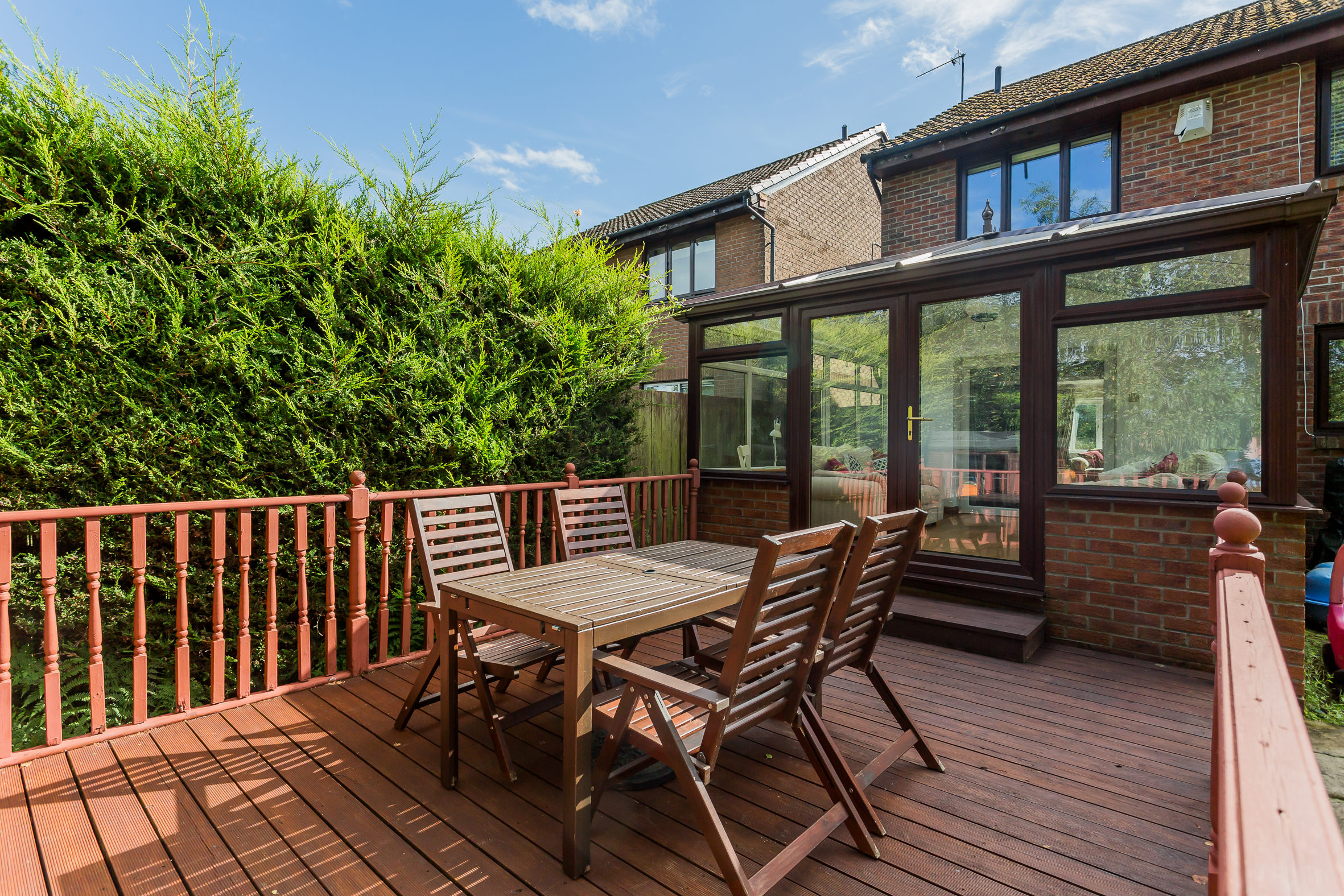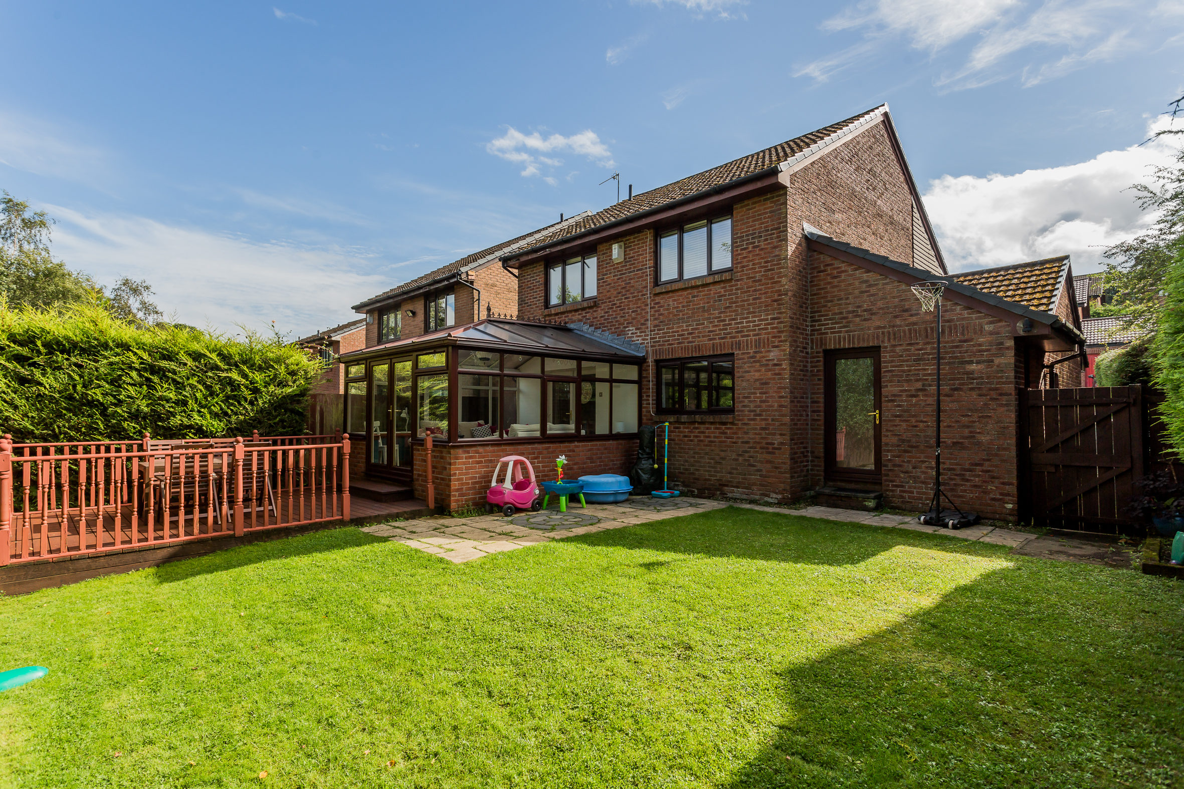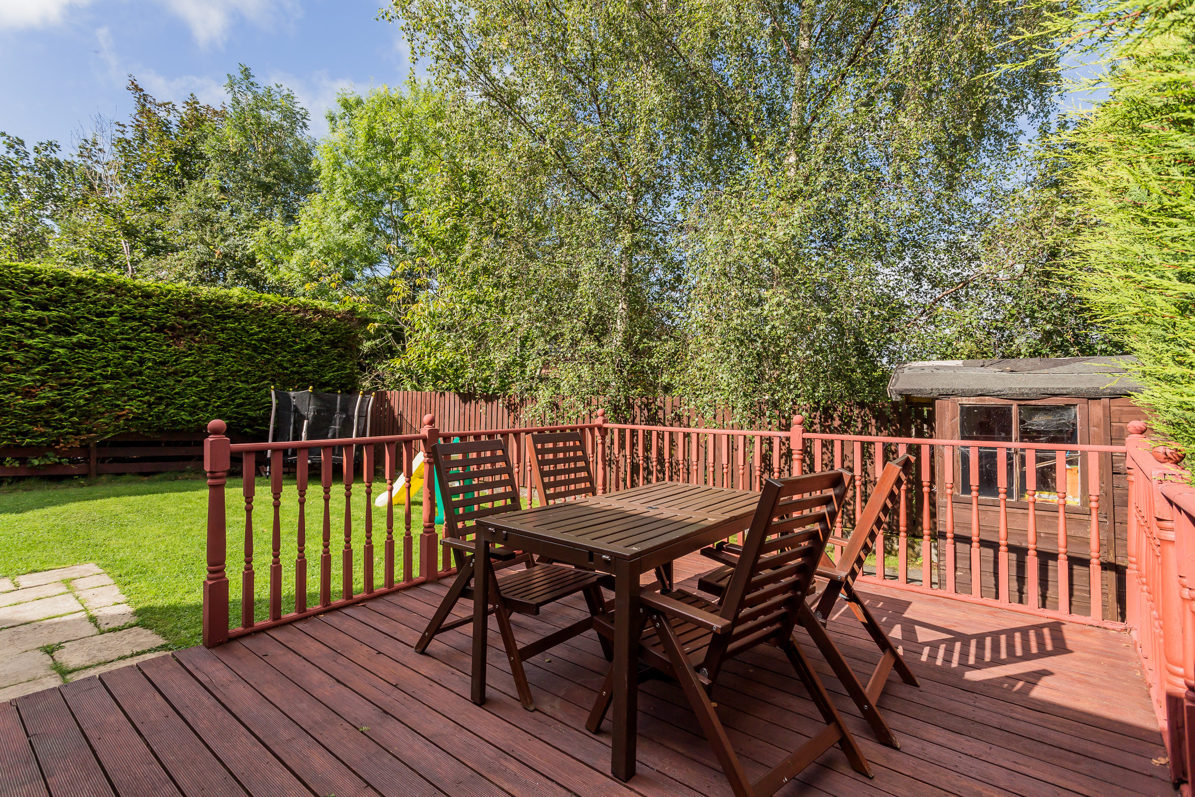 Externally the front there is a slab driveway leading to attached single garage. The rear garden is level with a timber deck, lawn and patio all bordered by mature hedging and trees. The specification includes gas central heating (new boiler 2021) & double glazing replaced in 2020.