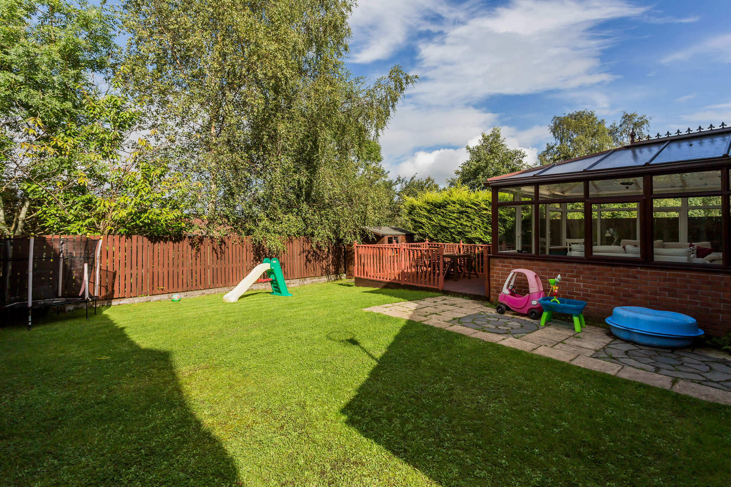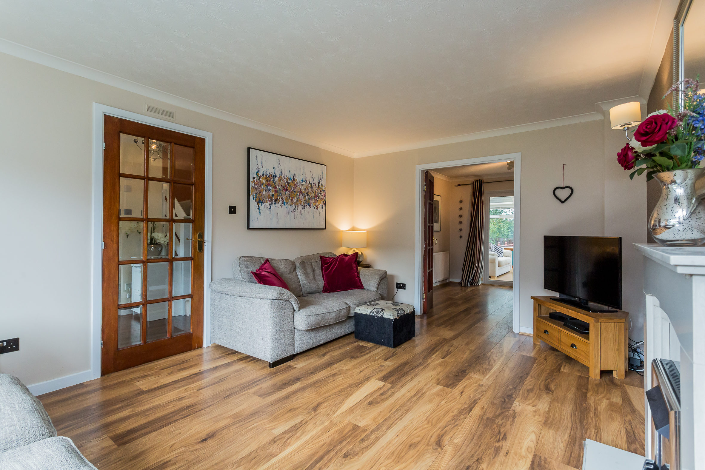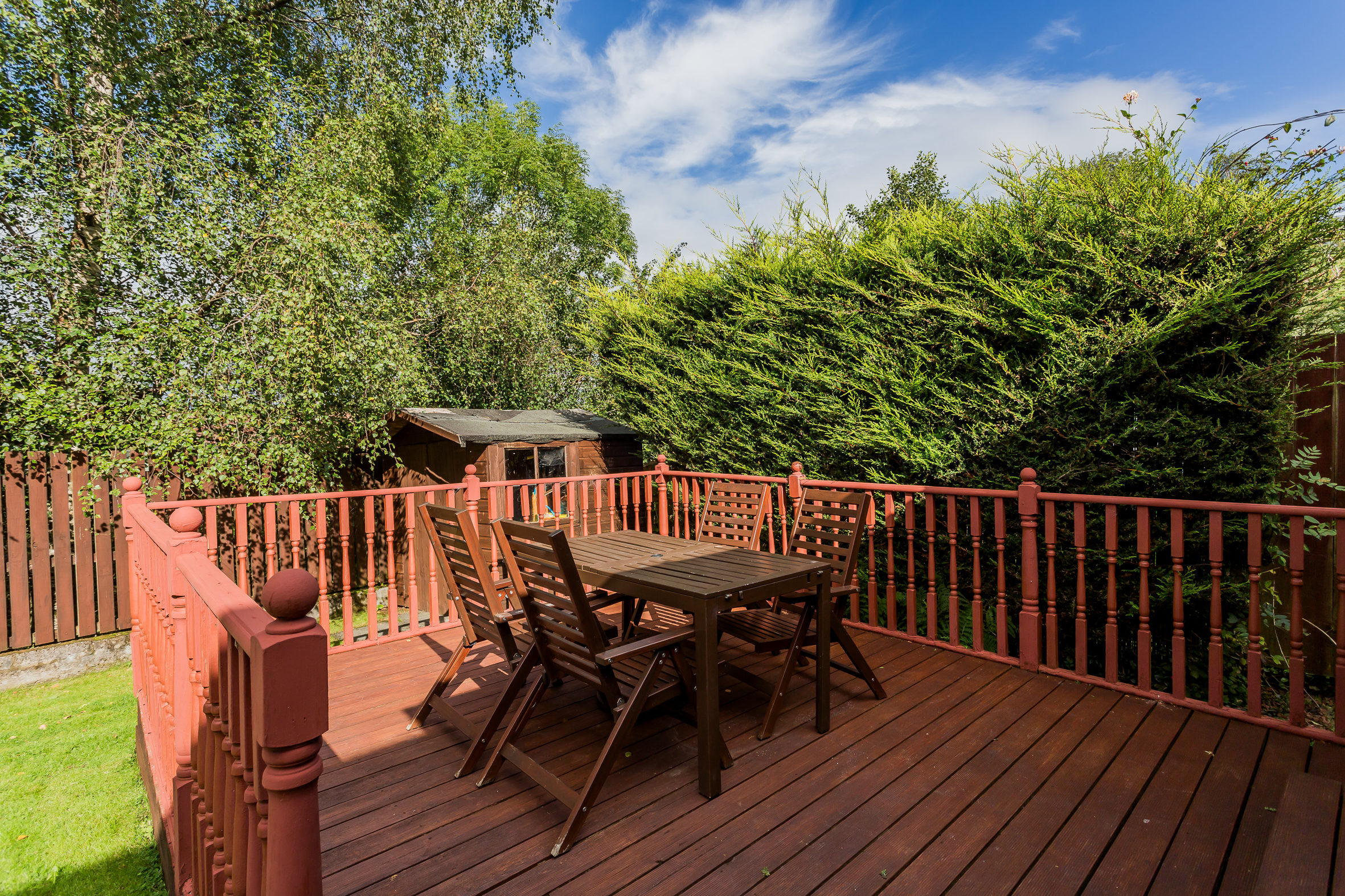 Externally the front there is a slab driveway leading to attached single garage. The rear garden is level with a timber deck, lawn and patio all bordered by mature hedging and trees. The specification includes gas central heating (new boiler 2021) & double glazing replaced in 2020.