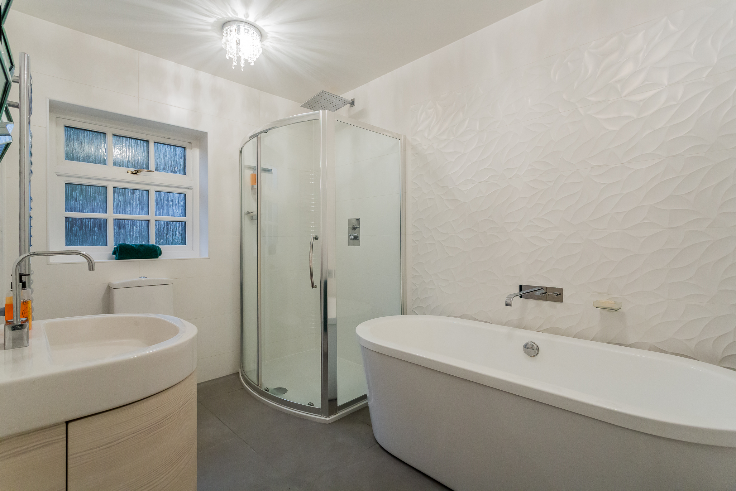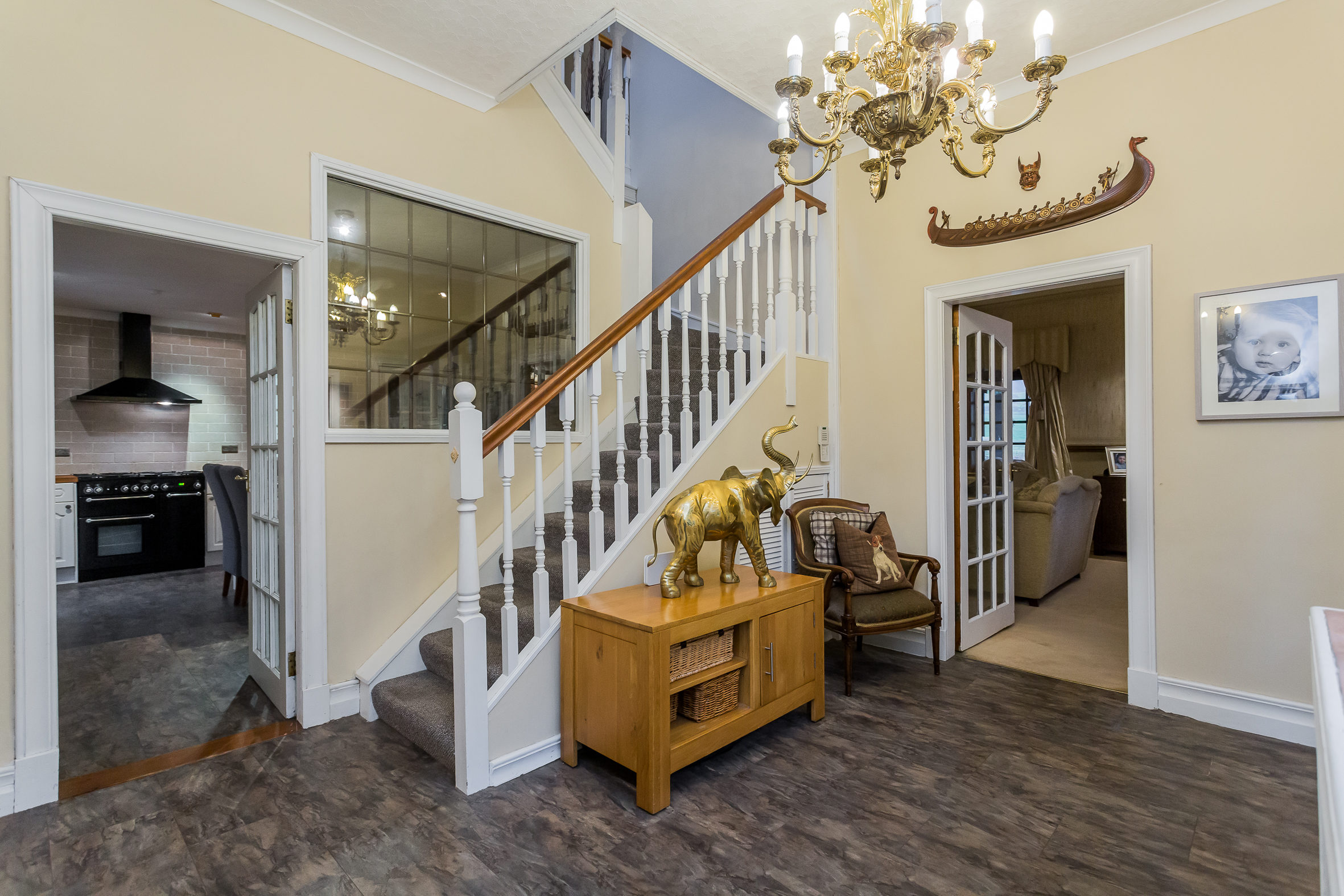 Upon arriving via the substantial stone chipped driveway you get a sense of the scale of the plot and the privacy surrounding. An entrance vestibule leads to the broad reception hallway which has the contemporary designed family bathroom off complete with freestanding bath, separate shower, WC and wash hand basin all complemented with Porcelanosa tiling.