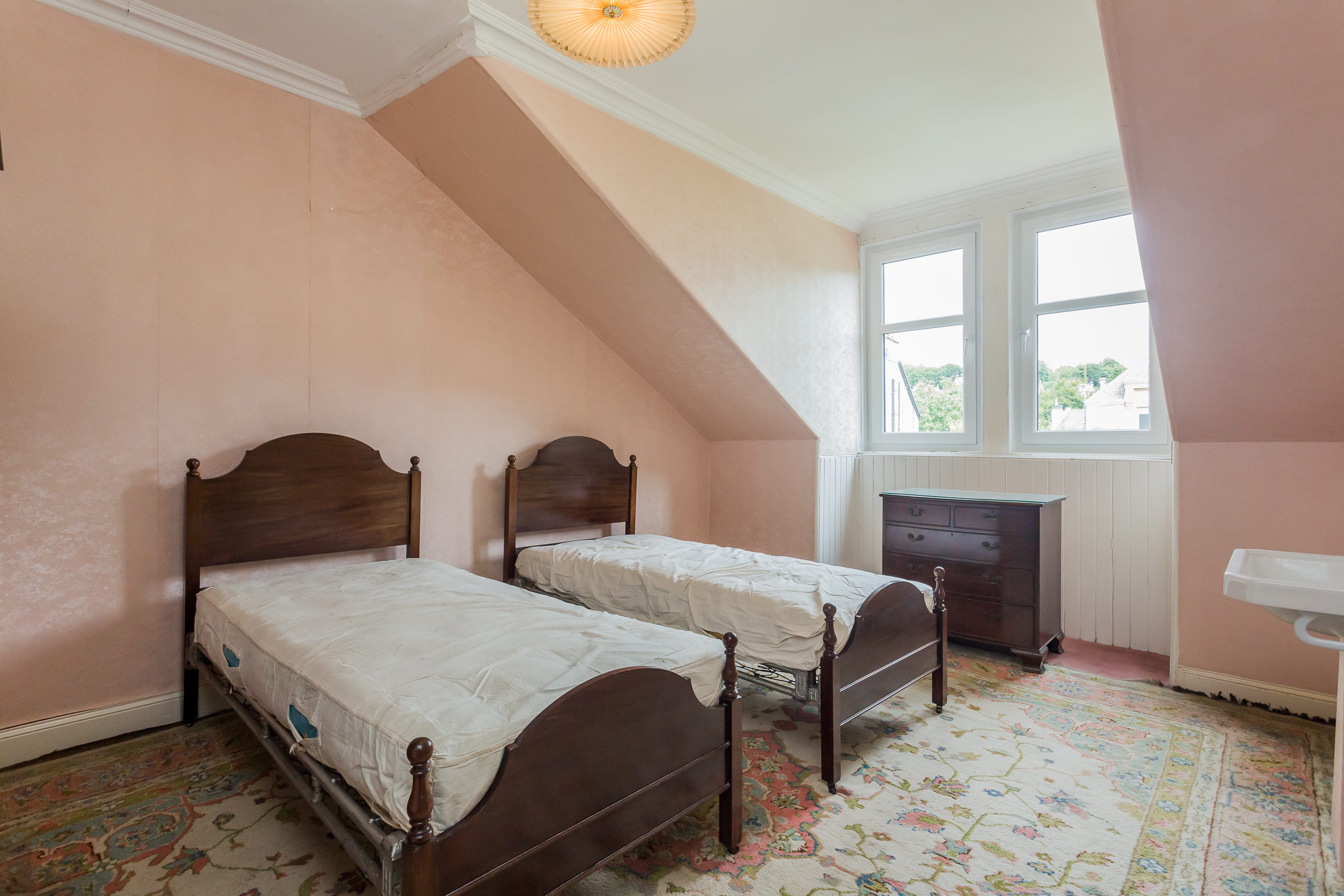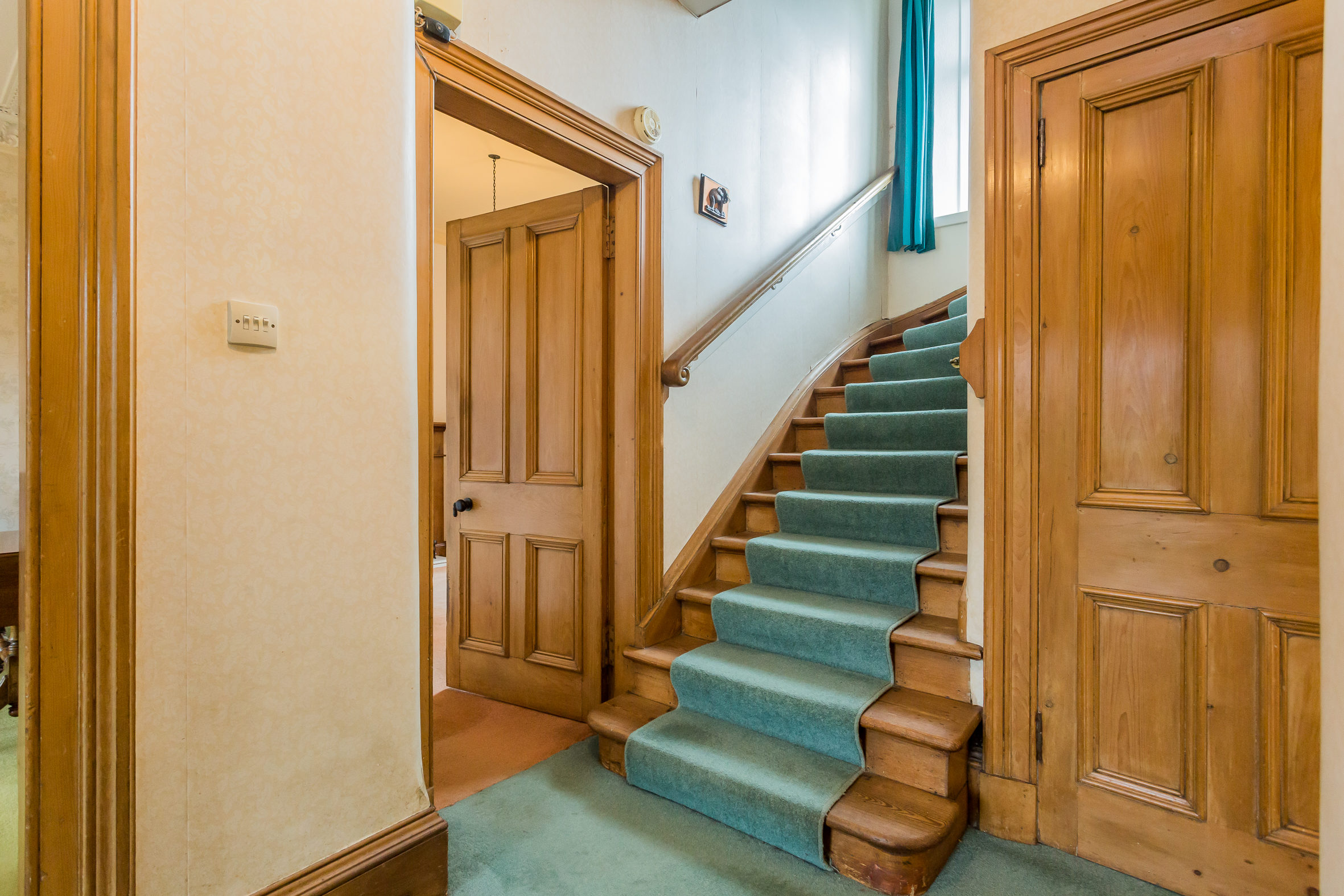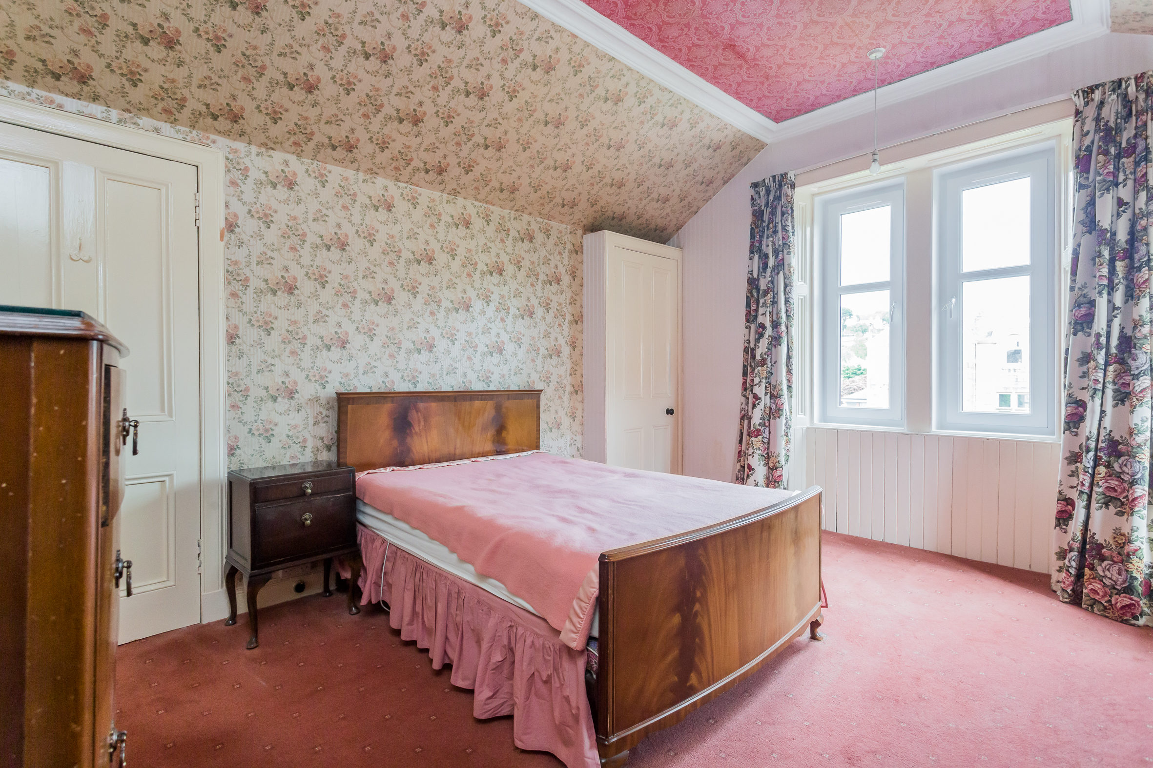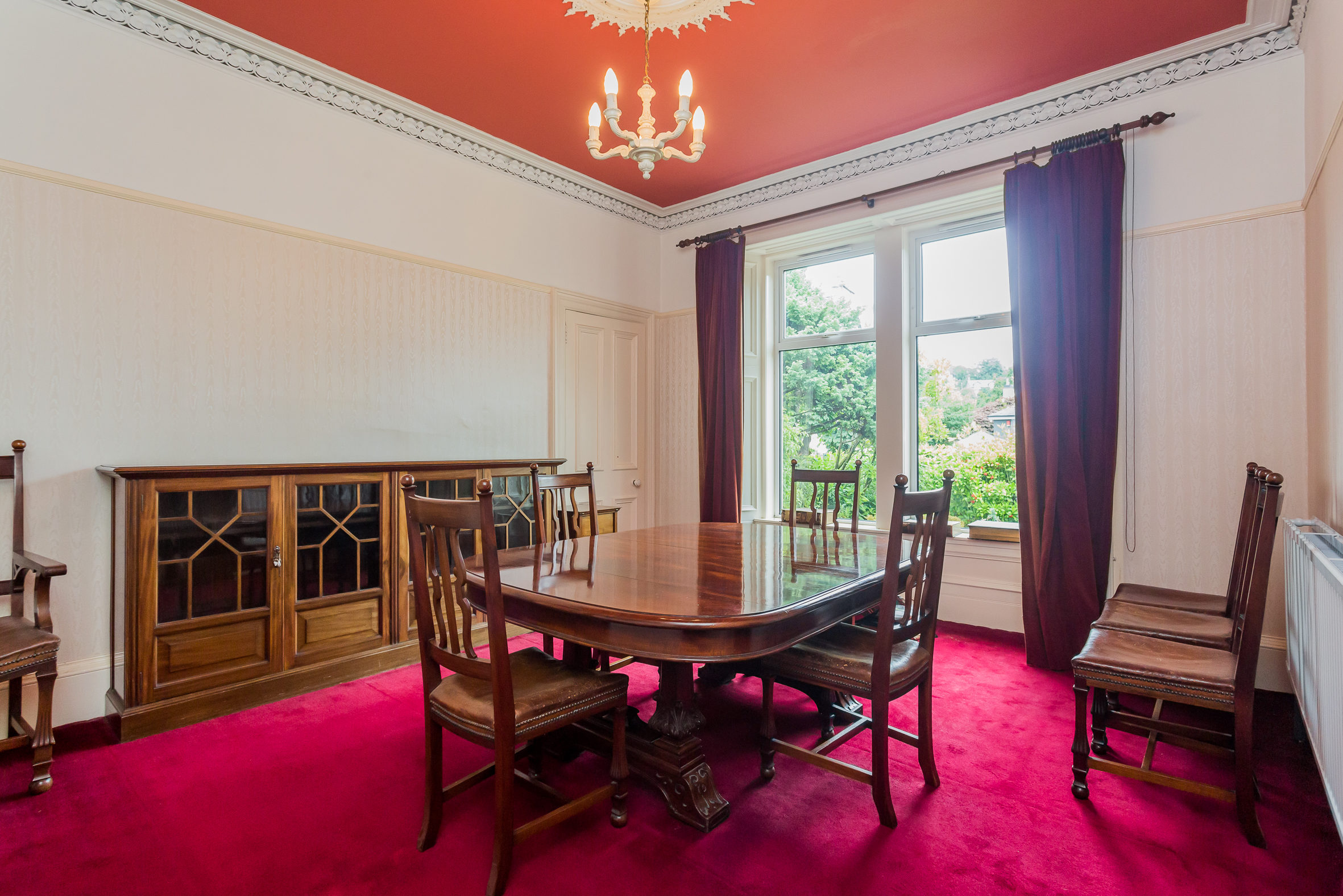 The storm doors at the front of the house open to the reception hallway which draws you into the house and leads to the apartments on the ground floor and has a stair to the upper level. Under the stair there is a useful cloakroom and WC. The principle living room is at the front of the property and has a deep bay window and an open fire for cosy evenings. There are period features including cornicing, high skirting boards and panel doors which are a common theme continuing throughout the property. The formal dining room is on the opposite side of the hall and is an impressive room to dine on holidays and high days, entertaining friends and family. The third public room is a flexible space, with a fireplace, that looks to the back garden and can be used as another sitting room or whatever a family requires. The kitchen, utility room and pantry provide an opportunity to create a wonderful bright space with charming garden views and plenty of room to house appliances.