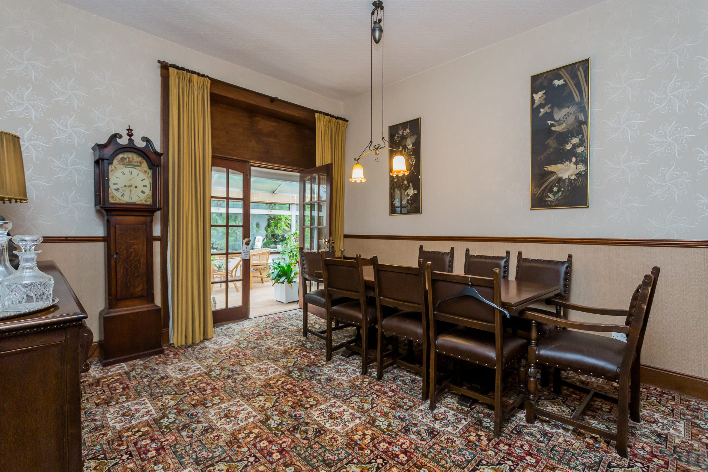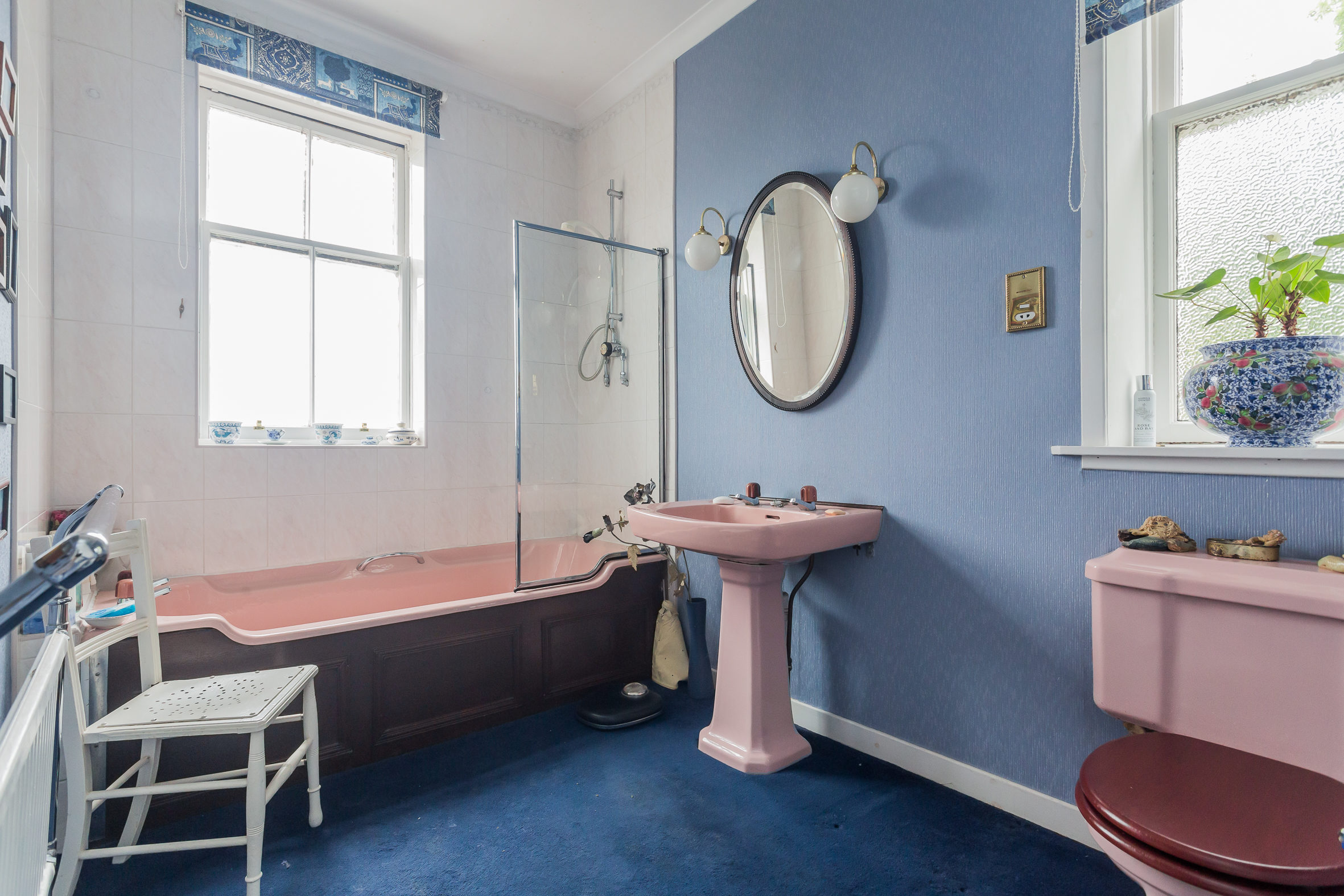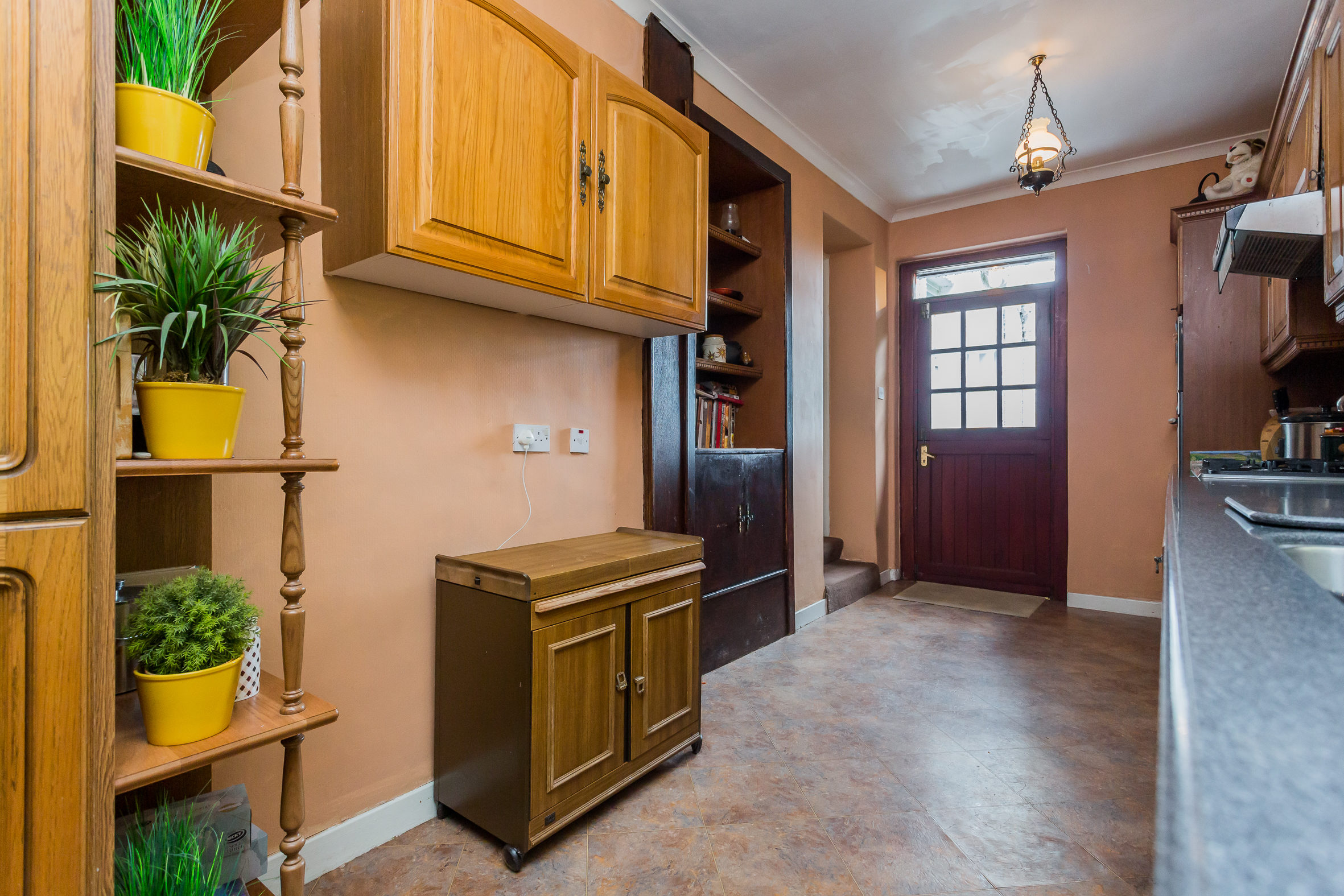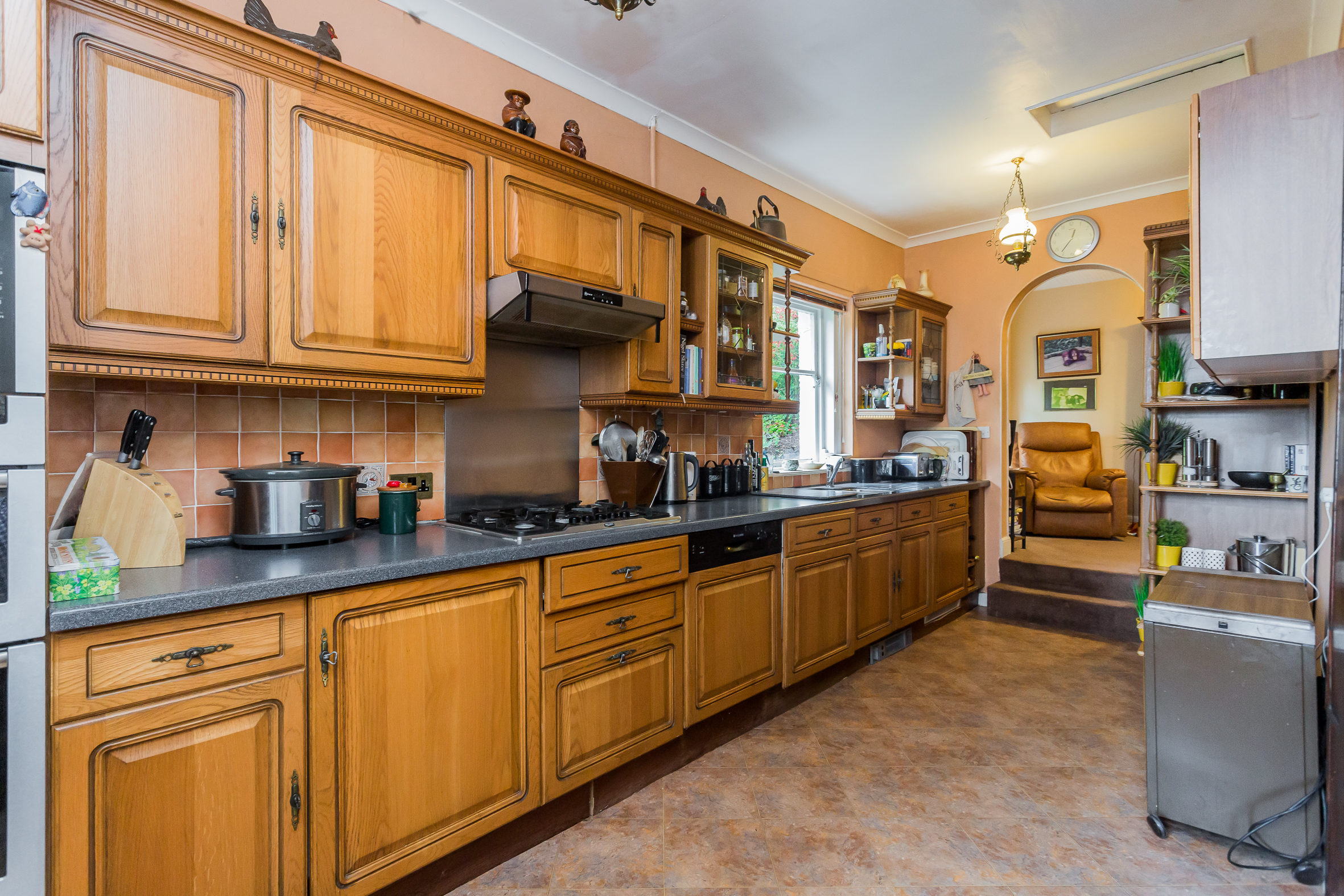 The house is entered via double leaf outer storm doors to the entrance vestibule and broad reception hallway that gives access to the bay window formal lounge with solid fuel fire. Also to the front is a sitting room. The dining room is to the rear and has a set of double doors that leads to the conservatory. A TV toom/snug is to the rear and gives access to the lower level kitchen that can also be accessed from the hallway. Completing the ground floor is a WC.