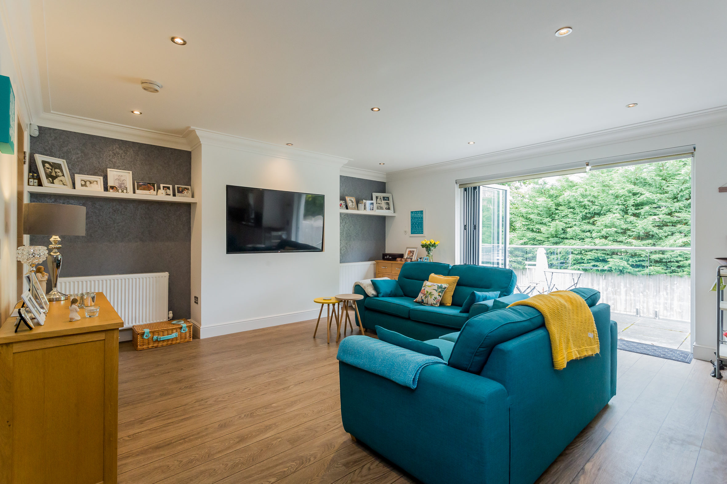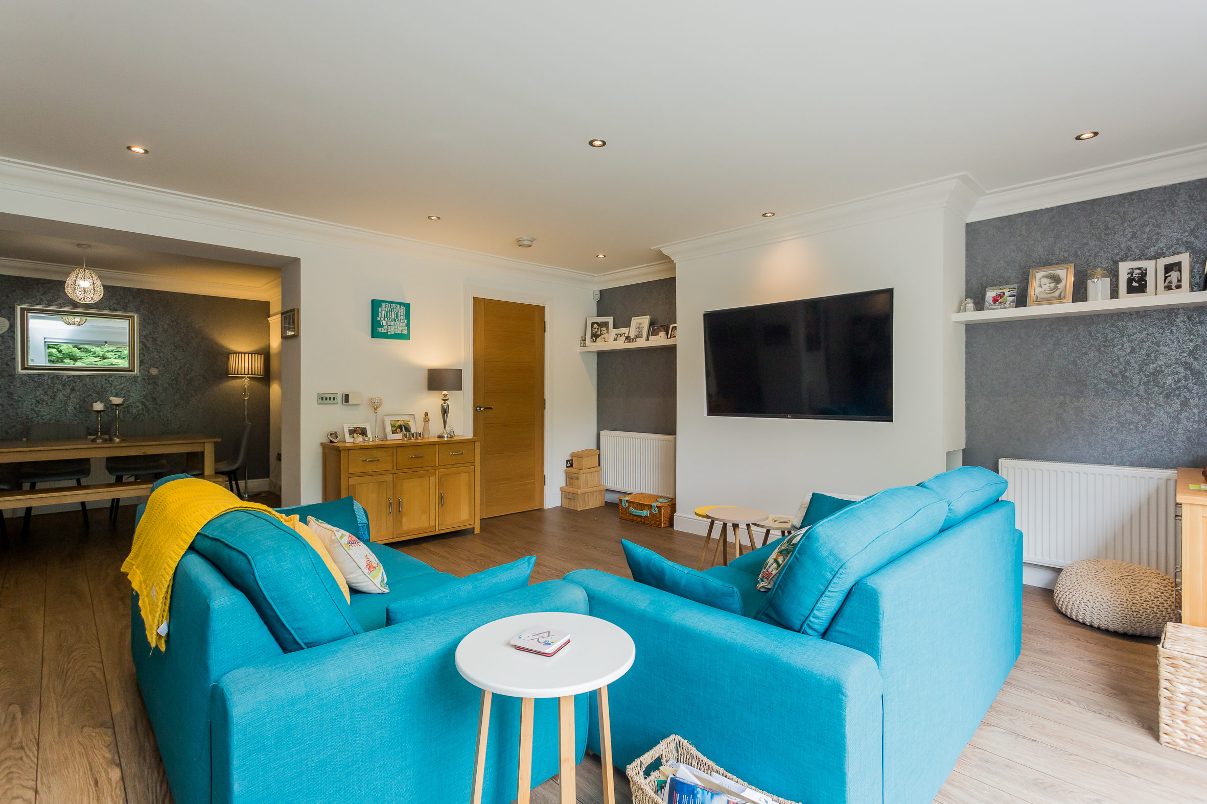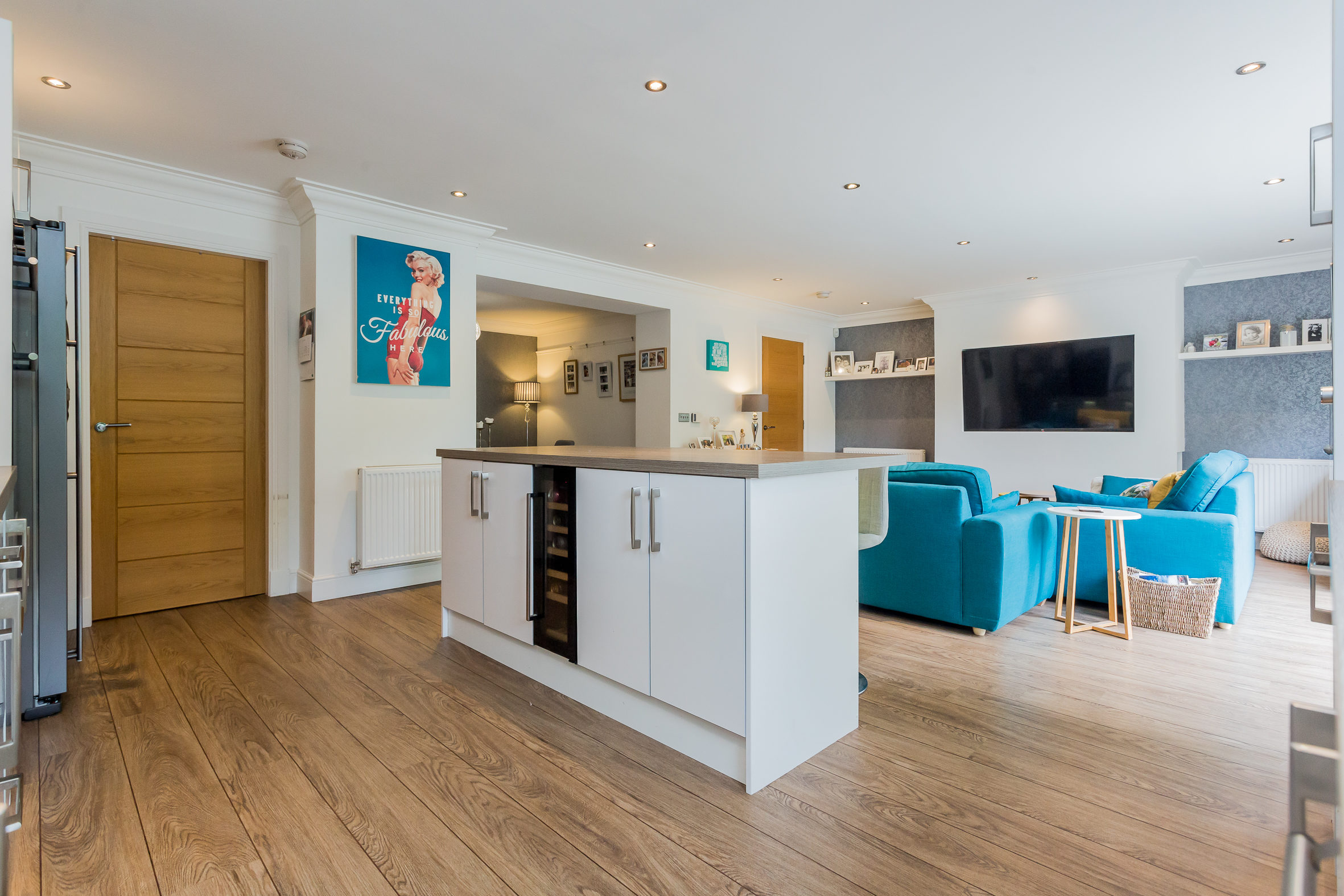 The property is set in a fabulous plot with accommodation comprising; entrance hallway with glass balustrade to upper level, family room, ground floor bedroom, contemporary fully tiled bathroom and the outstanding feature; the open plan lounge, breakfast/kitchen with dining room set back creating the most fantastic living/social space for todays modern buyer. The kitchen itself has ample wall & base units with integrated, oven, hob, extractor hood, microwave, wine fridge and dishwasher. The island is ideal for casual dining and there is a set of Bi-fold doors leading to the amazing garden. Off the kitchen is a utility room with plumbing and beyond this a cloakroom with WC and wash hand basin.