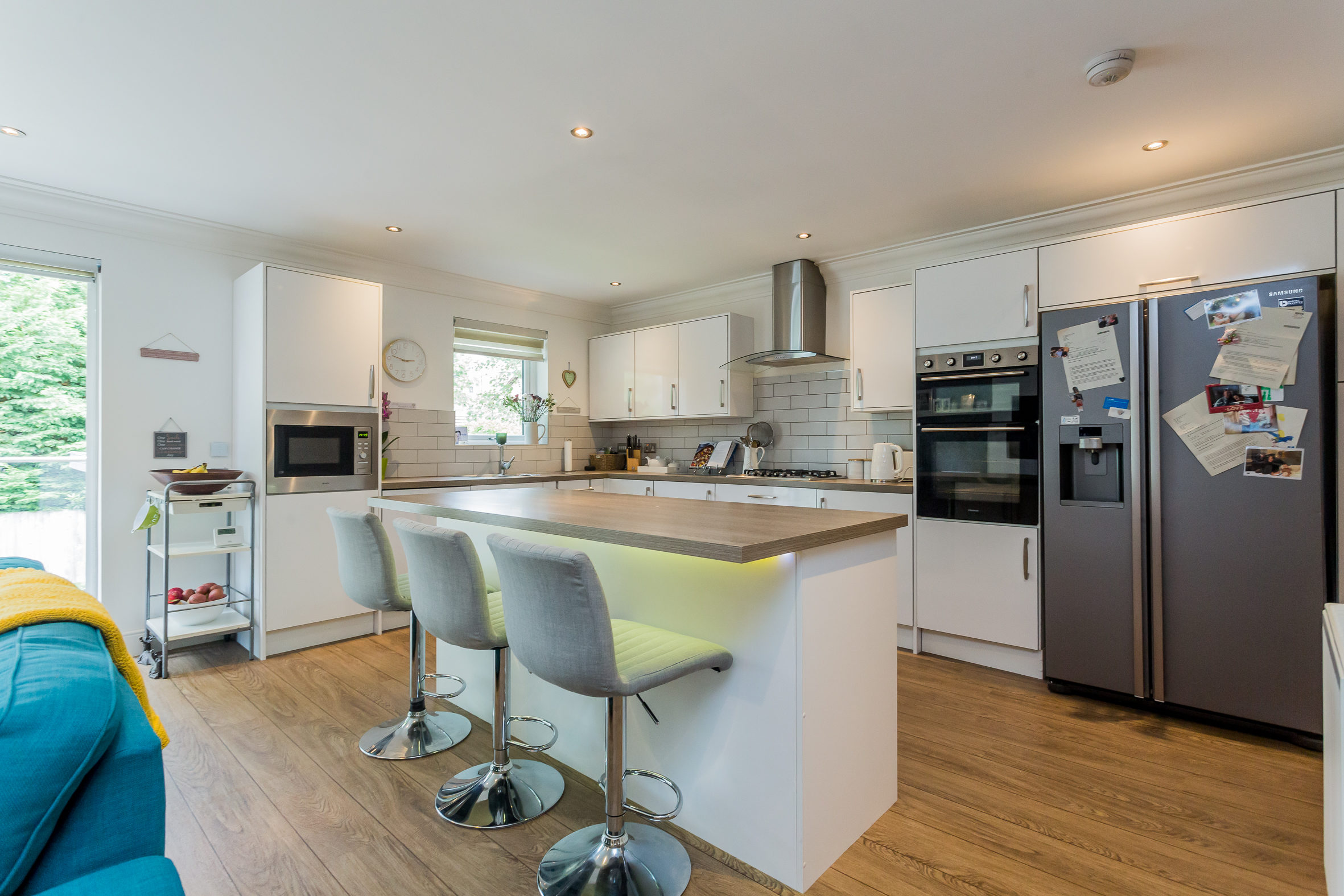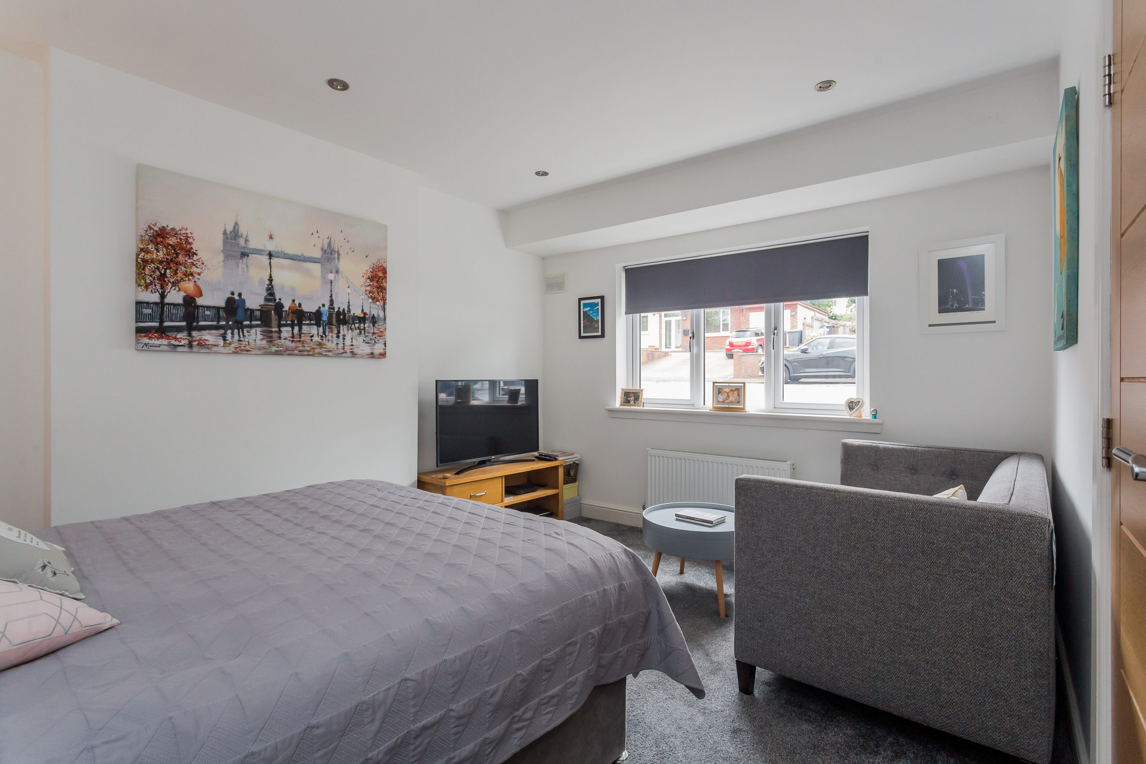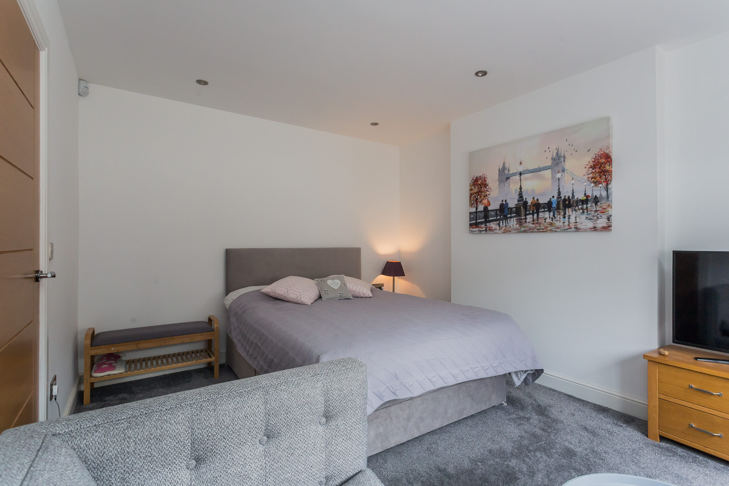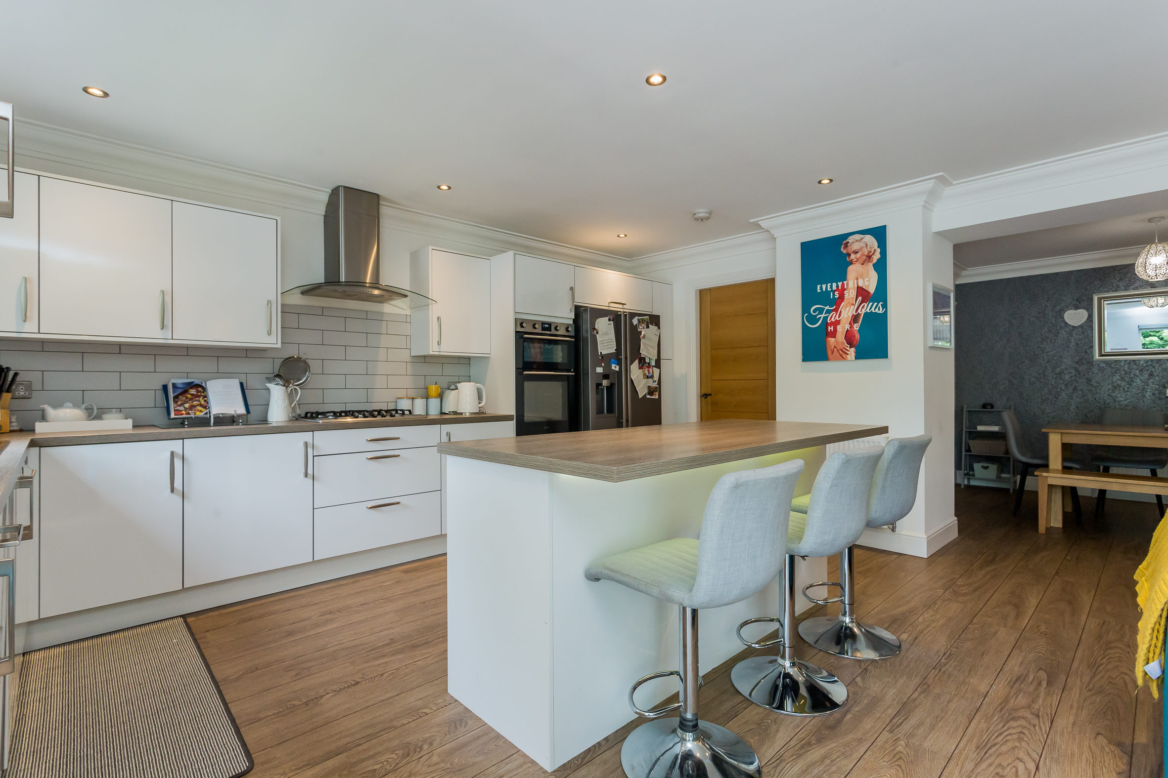 The property is set in a fabulous plot with accommodation comprising; entrance hallway with glass balustrade to upper level, family room, ground floor bedroom, contemporary fully tiled bathroom and the outstanding feature; the open plan lounge, breakfast/kitchen with dining room set back creating the most fantastic living/social space for todays modern buyer. The kitchen itself has ample wall & base units with integrated, oven, hob, extractor hood, microwave, wine fridge and dishwasher. The island is ideal for casual dining and there is a set of Bi-fold doors leading to the amazing garden. Off the kitchen is a utility room with plumbing and beyond this a cloakroom with WC and wash hand basin.