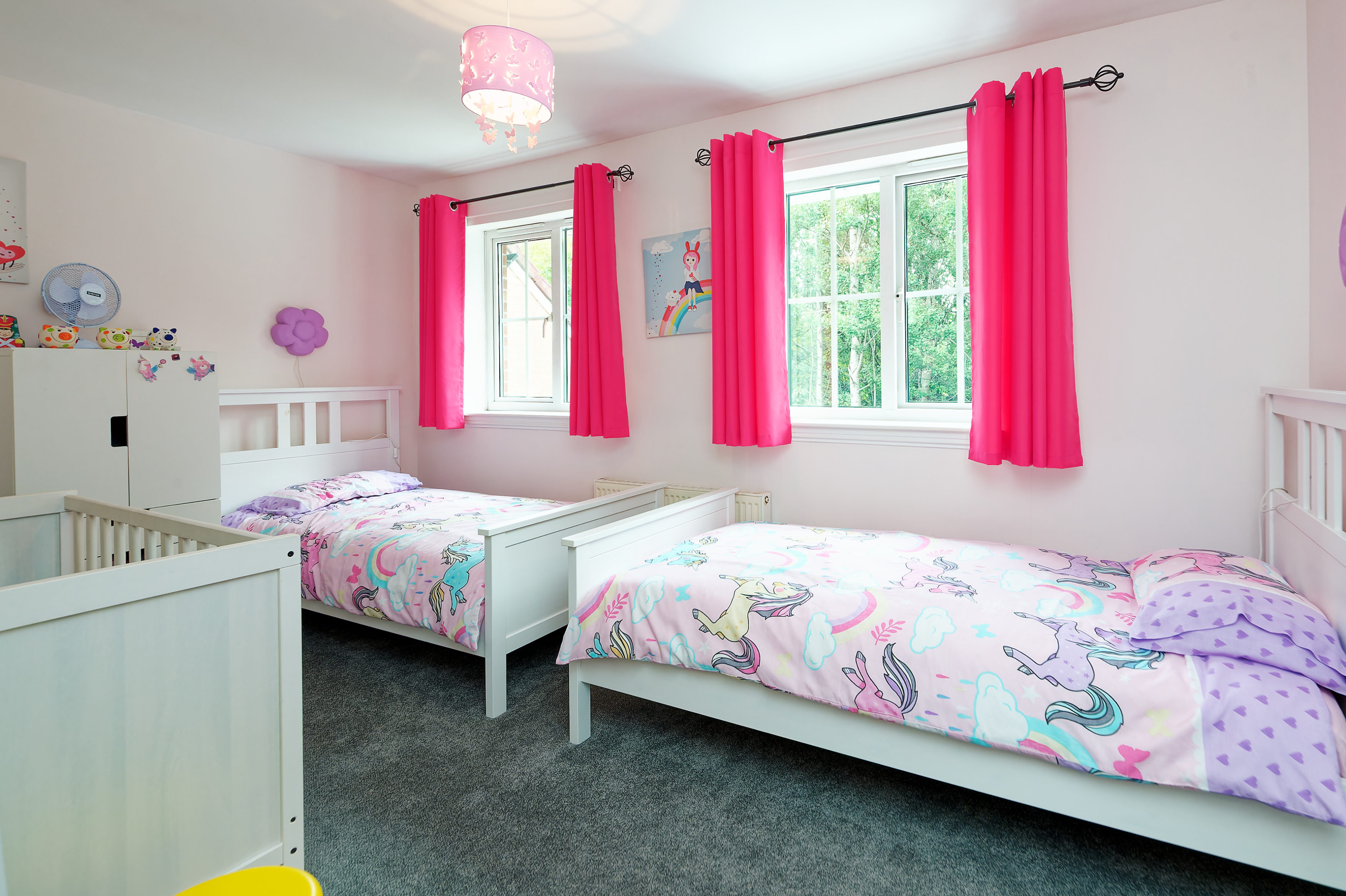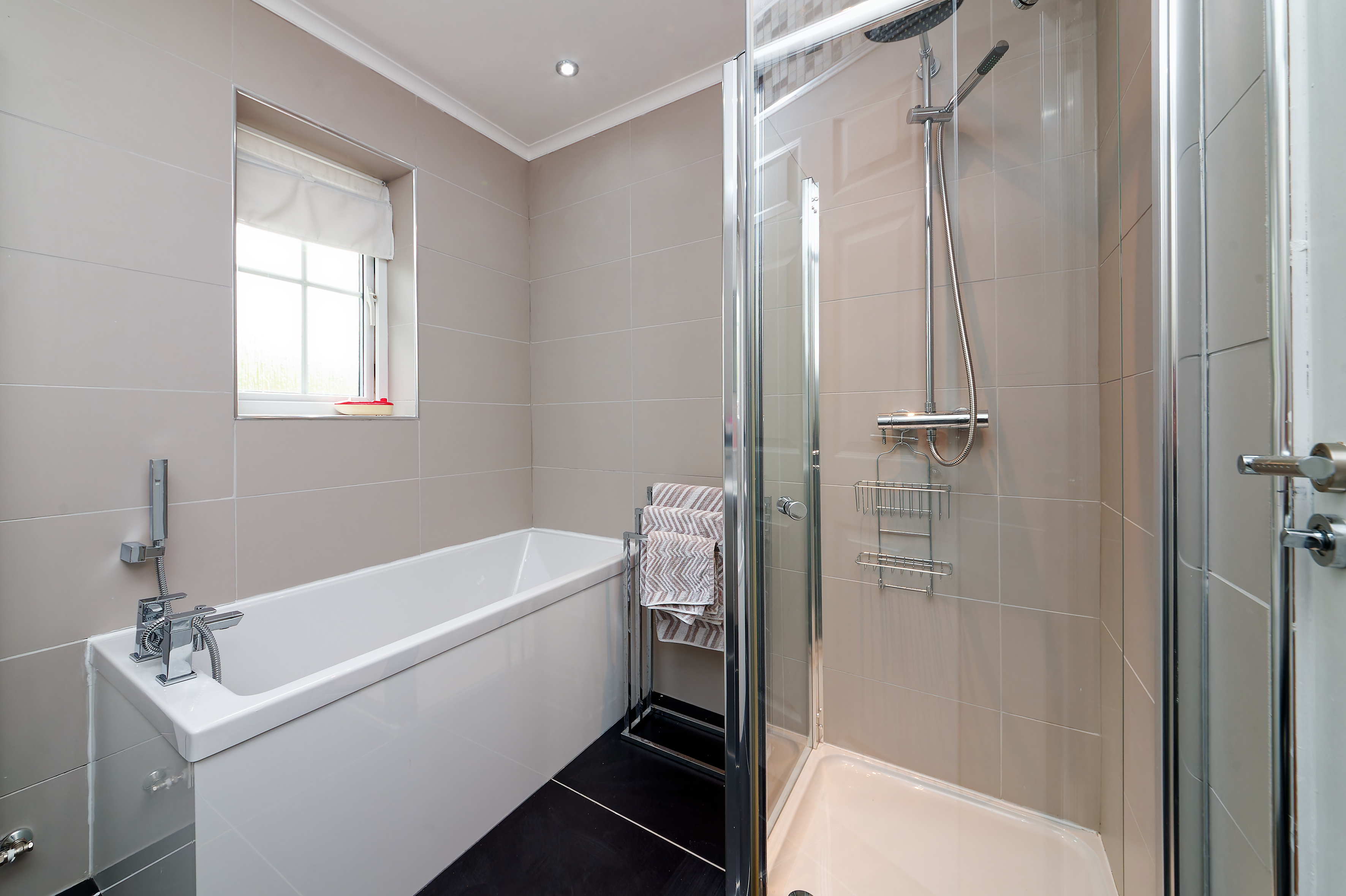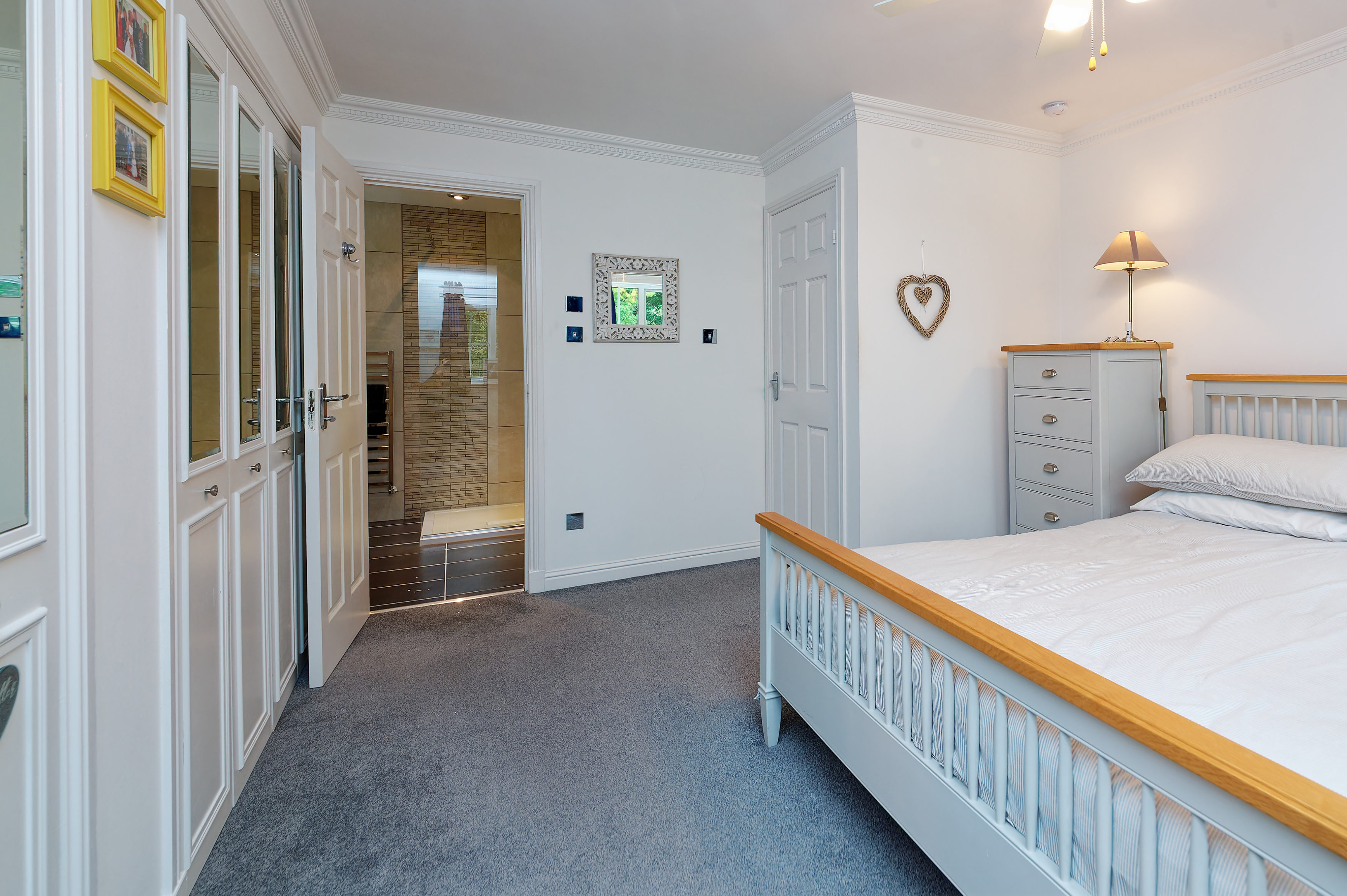 On the upper level there is a generous landing which accesses four double bedrooms and the house bathroom. The bathroom has a bath, separate shower, WC and wash hand basin. The principal bedroom has a fully tiled en suite shower room. Each of the bedrooms have built in fitted wardrobes with the rear bedrooms having the benefit of a woodland setting.