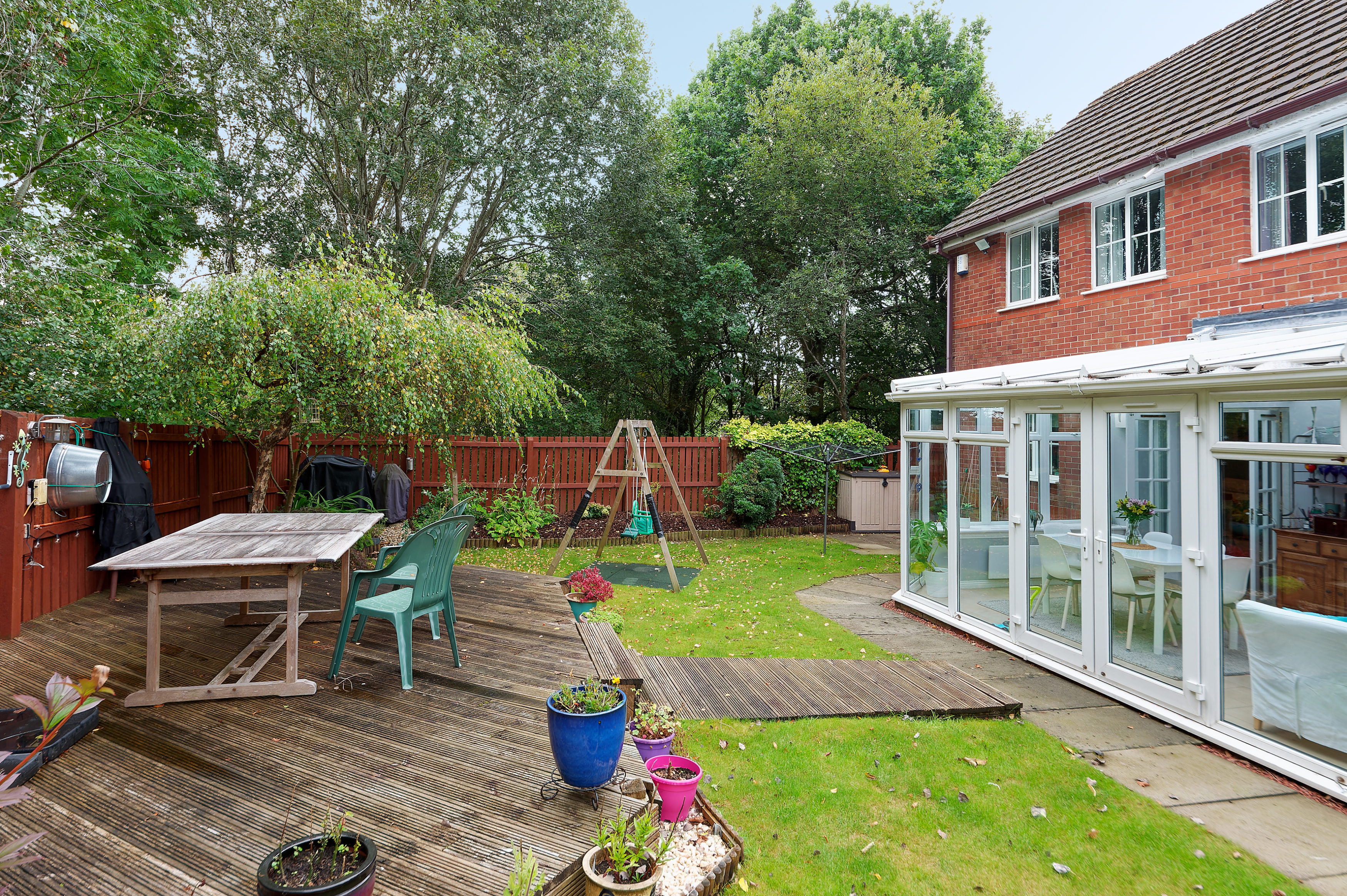 The gardens have been beautifully landscaped and have well stocked borders with mature plants. There is both lawn and timber deck, patio all bordered by timber fencing and woodland.