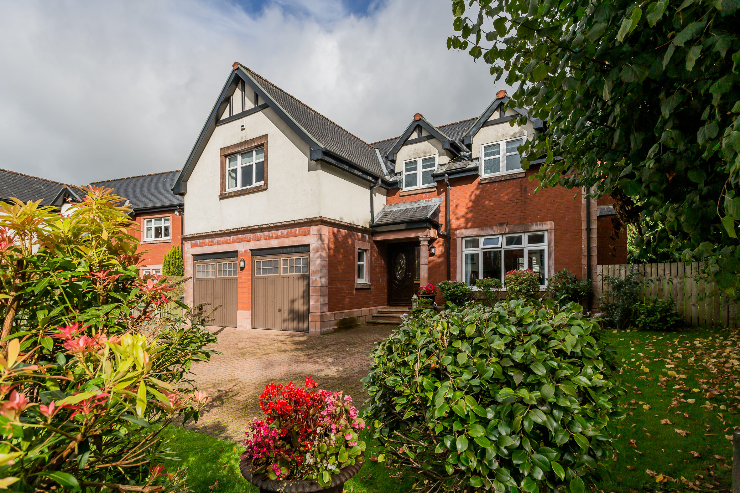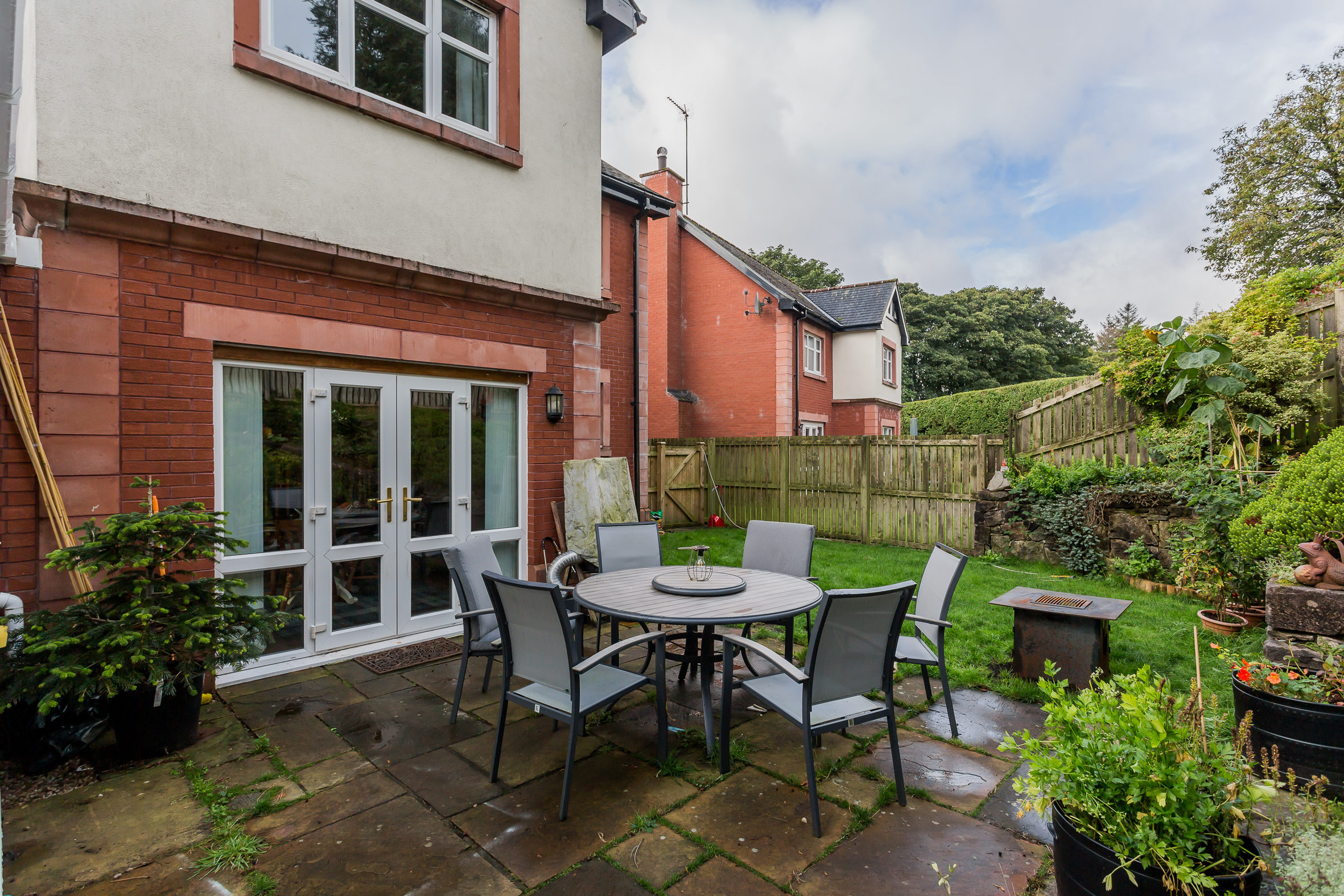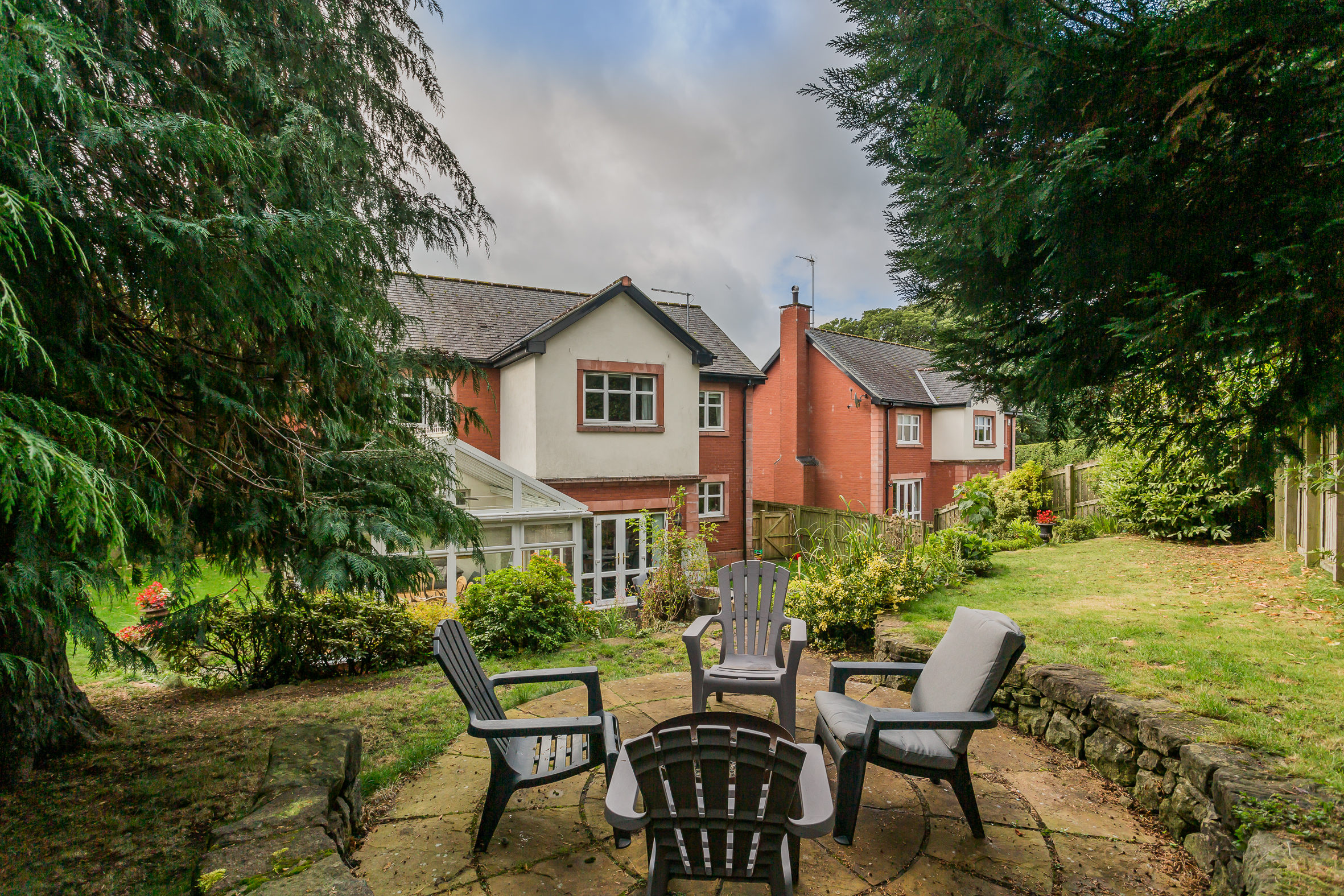 Externally the property is entered into via a set of wrought iron gates that lead to the monobloc driveway and access to the double garage. The wrap around gardens are mainly laid to lawn with a level patio. Stone steps lead to an elevated patio and further section of lawn.