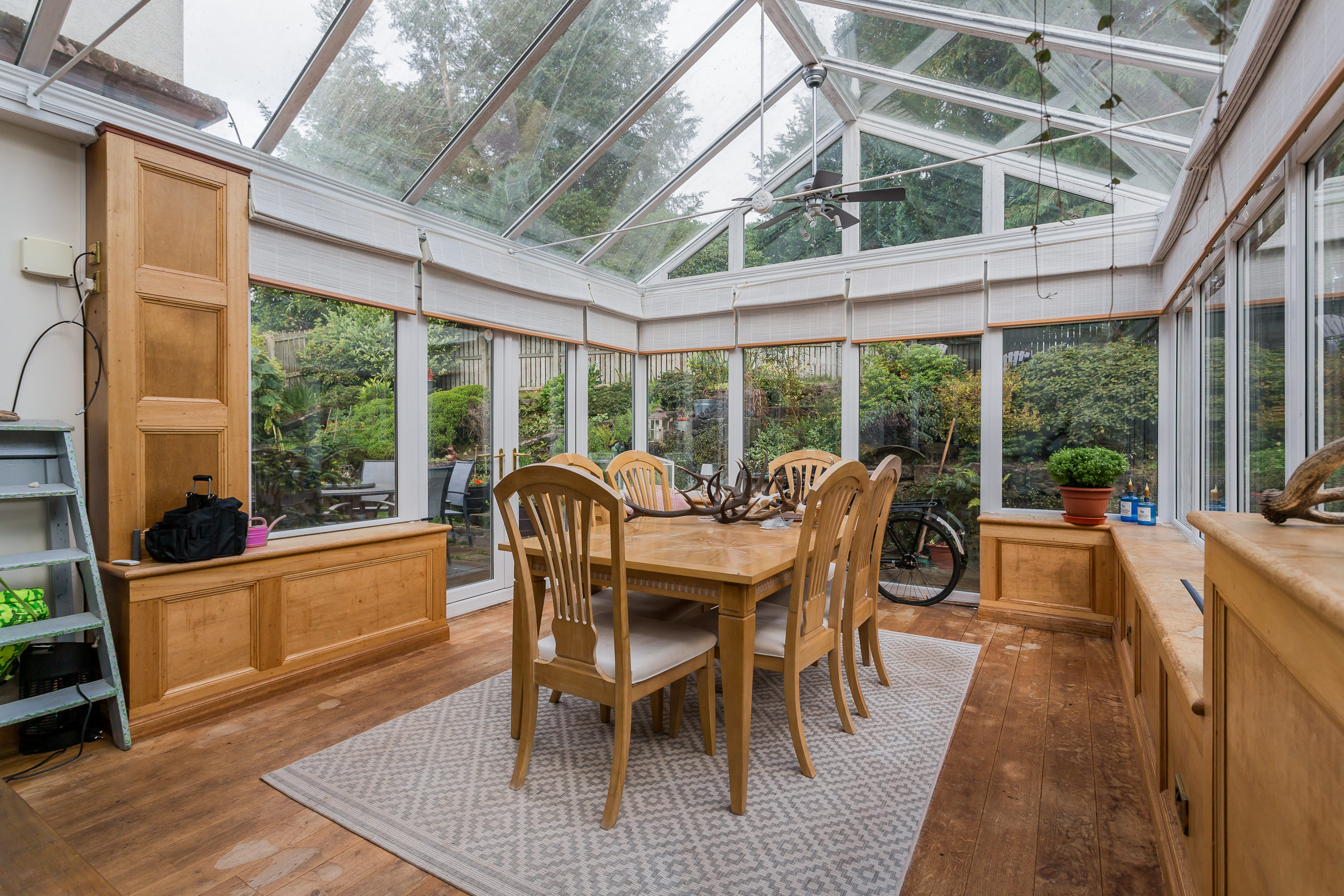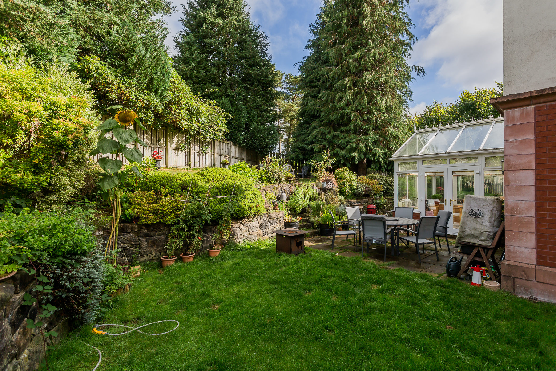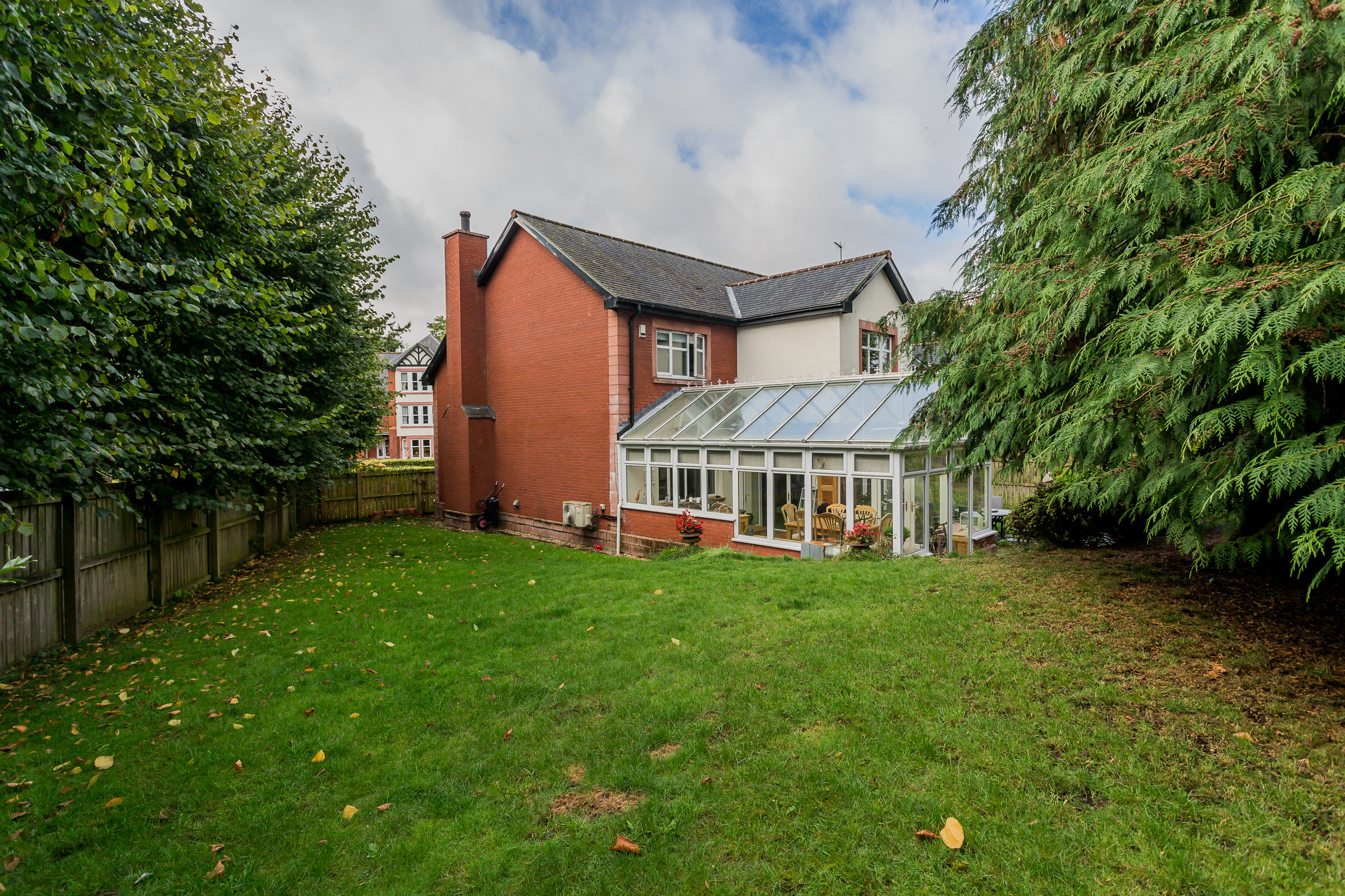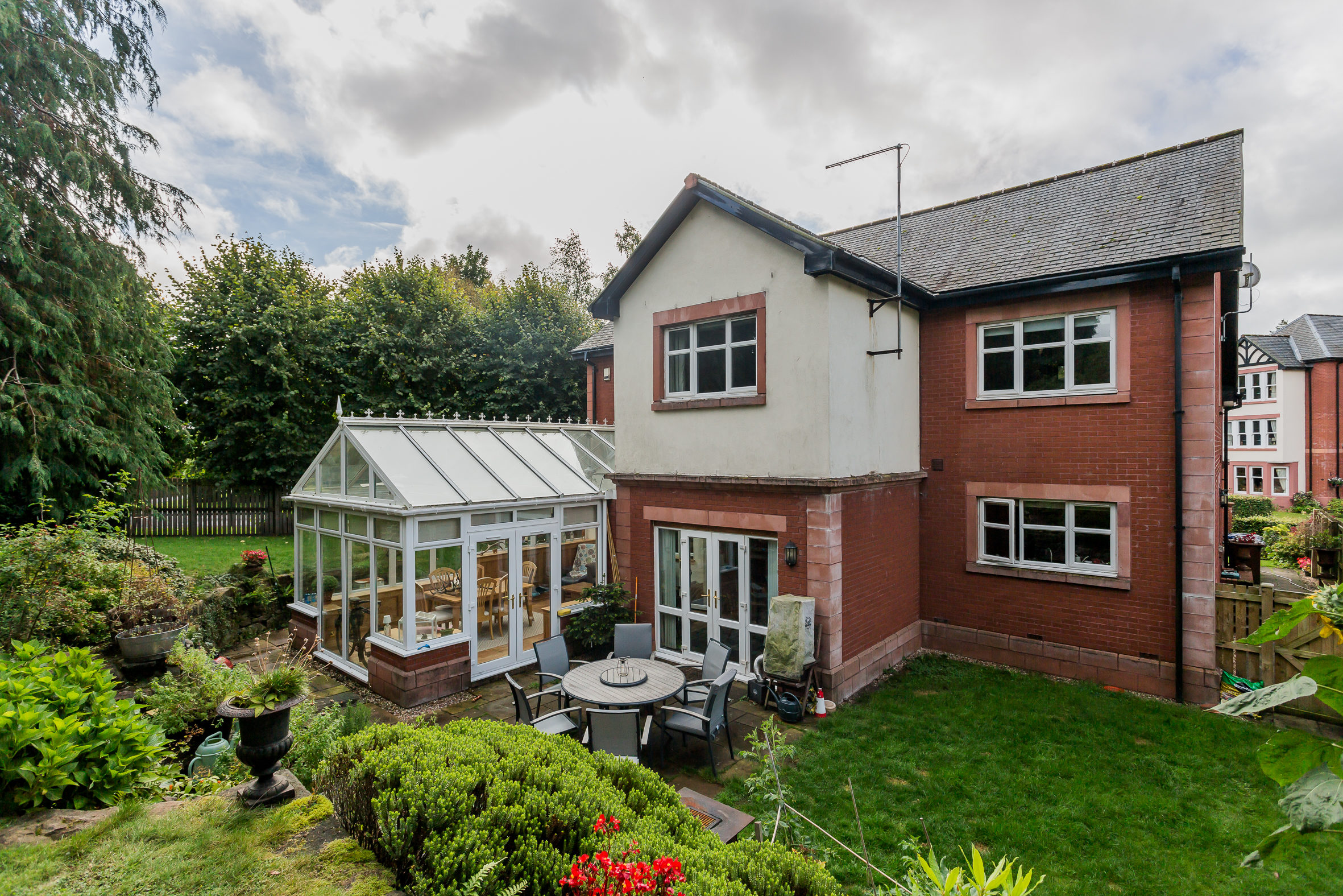 Externally the property is entered into via a set of wrought iron gates that lead to the monobloc driveway and access to the double garage. The wrap around gardens are mainly laid to lawn with a level patio. Stone steps lead to an elevated patio and further section of lawn.