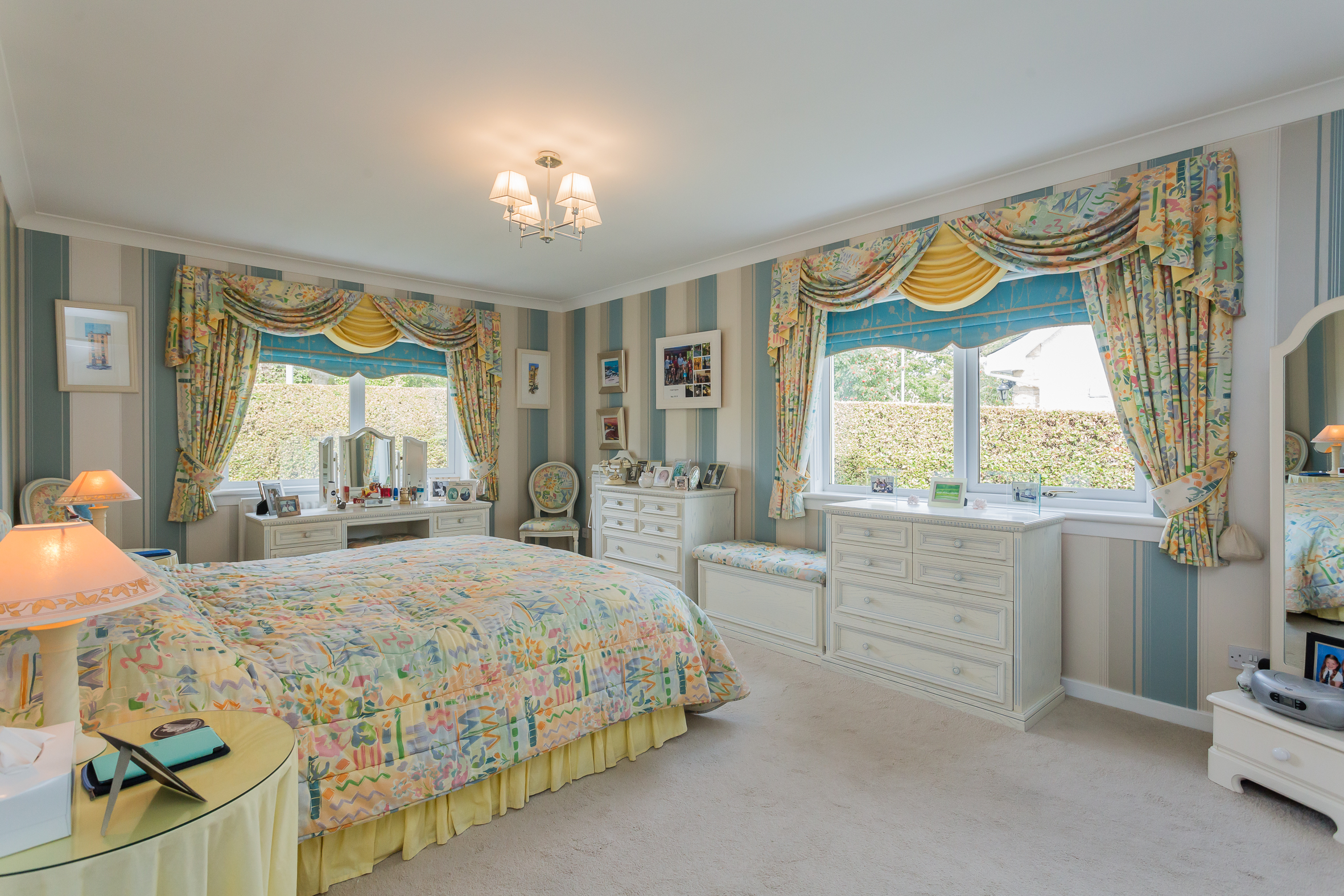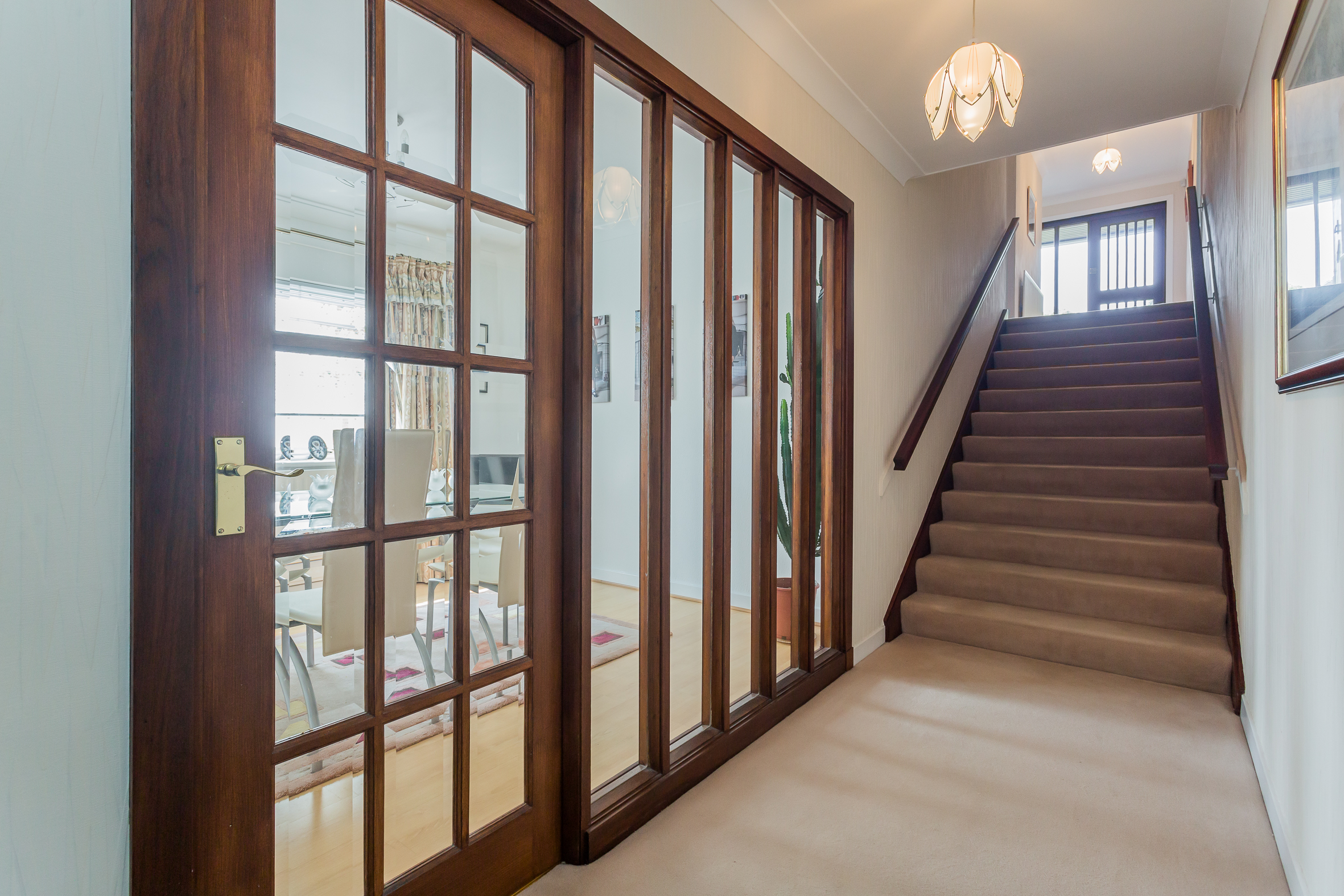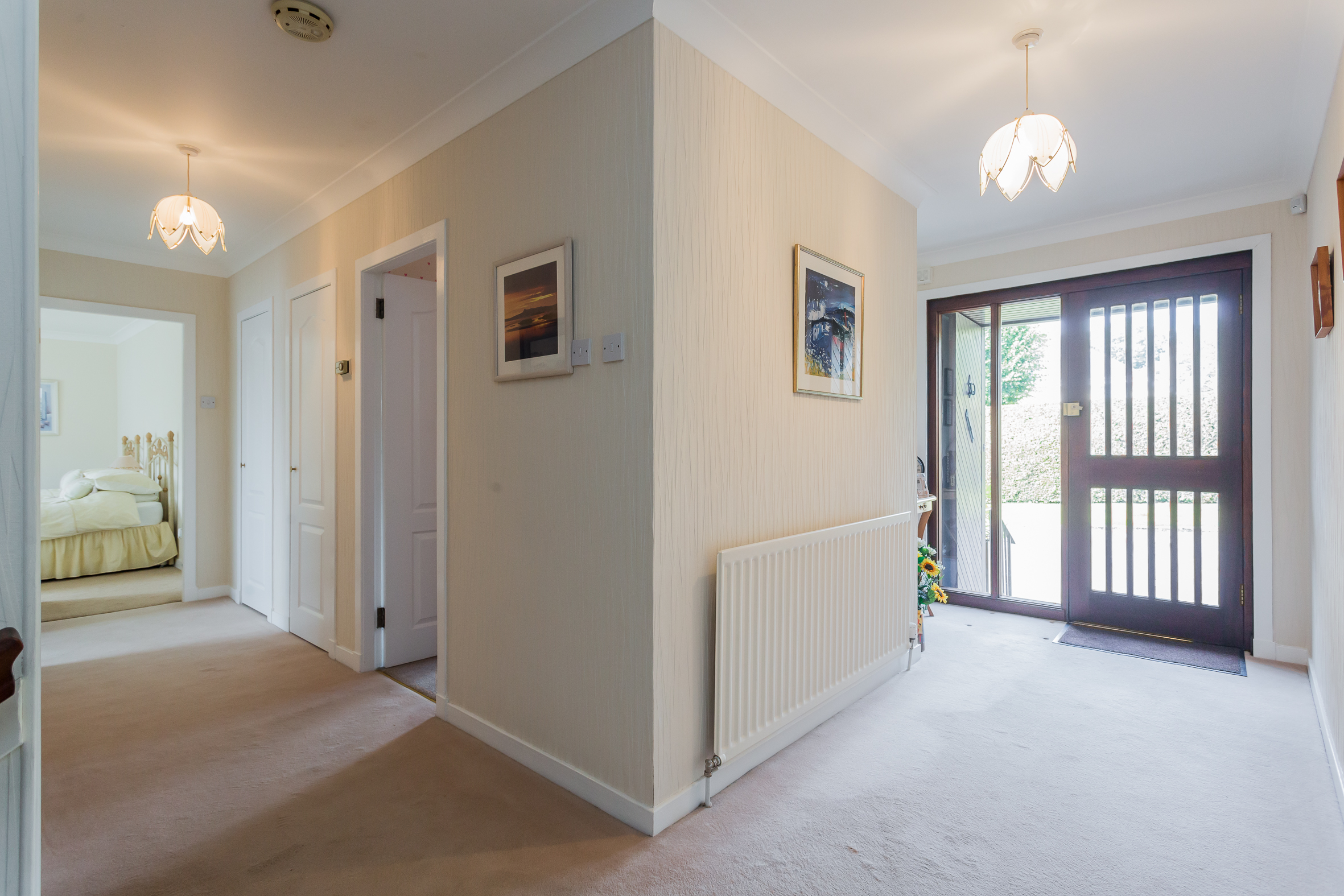 Entered via timber outer leaf storm doors into a broad reception hallway, this floor has three bedrooms and fabulous storage. The principal bedroom has an en-suite bathroom and the house bathroom is also on this floor as well as a walk-in storage cupboard that gives access to the attic. From bedroom two there is also access to the garage as previously this bedroom was also used as a home office.