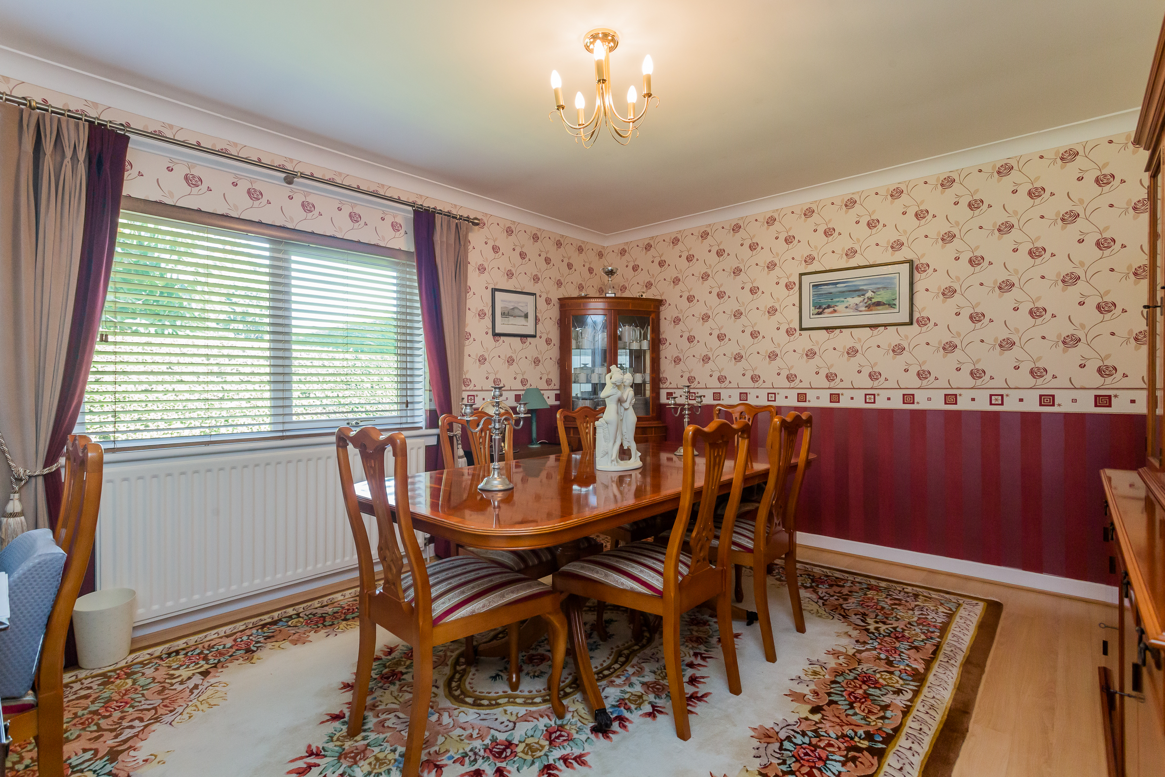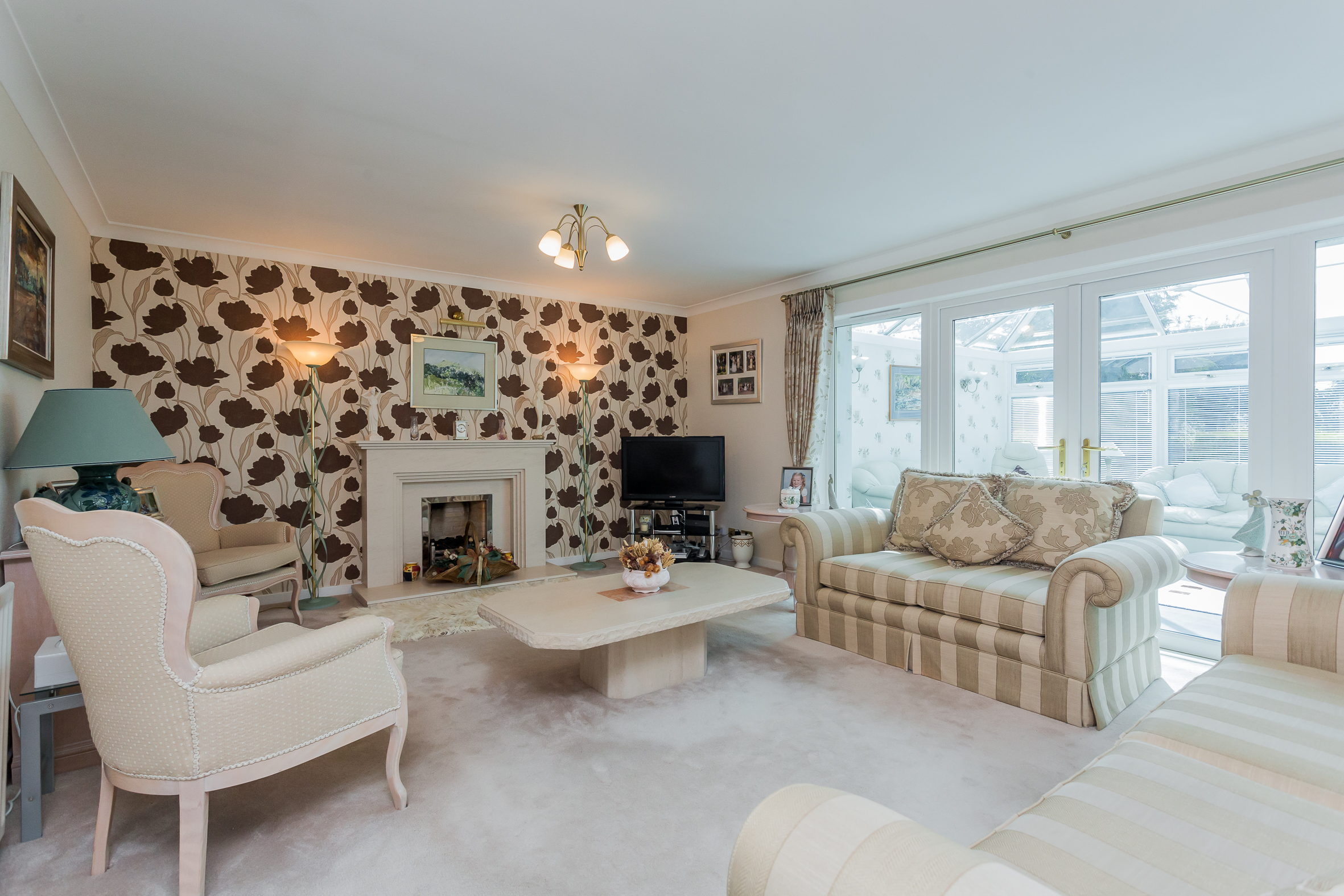 The broad stairwell leads down to a magnificent lounge with limestone fireplace and living flame gas fire, French doors to the conservatory, separate dining room or possibly fourth bedroom, stunning breakfast kitchen and separate utility and a further dining room or home office.