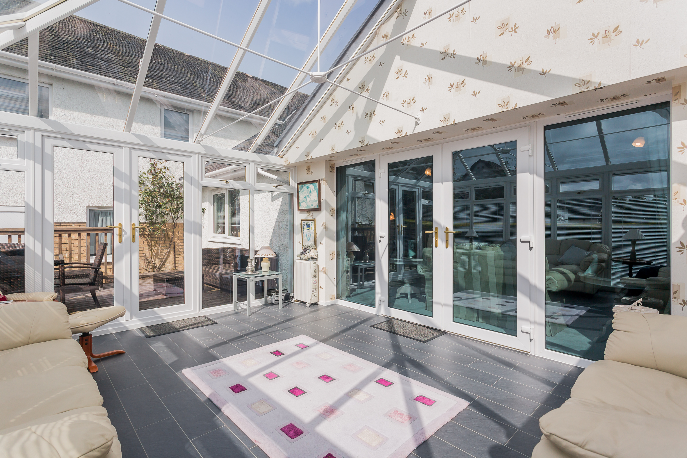 Kilmacolm village centre Is a pleasant level walk of around 250m and offers a range of shops and facilities which will adequately cater for everyday needs and requirements. The prestigious St Columba’s School is conveniently situated within the village along with Kilmacolm Primary School. Social and recreational facilities are all catered for including golf club, tennis club, bowling club and restaurants. Kilmacolm is a short drive away from Johnstone bypass which links up with the M8 motorway and connects to the Airport, Paisley, Braehead Shopping Centre and Glasgow City Centre.