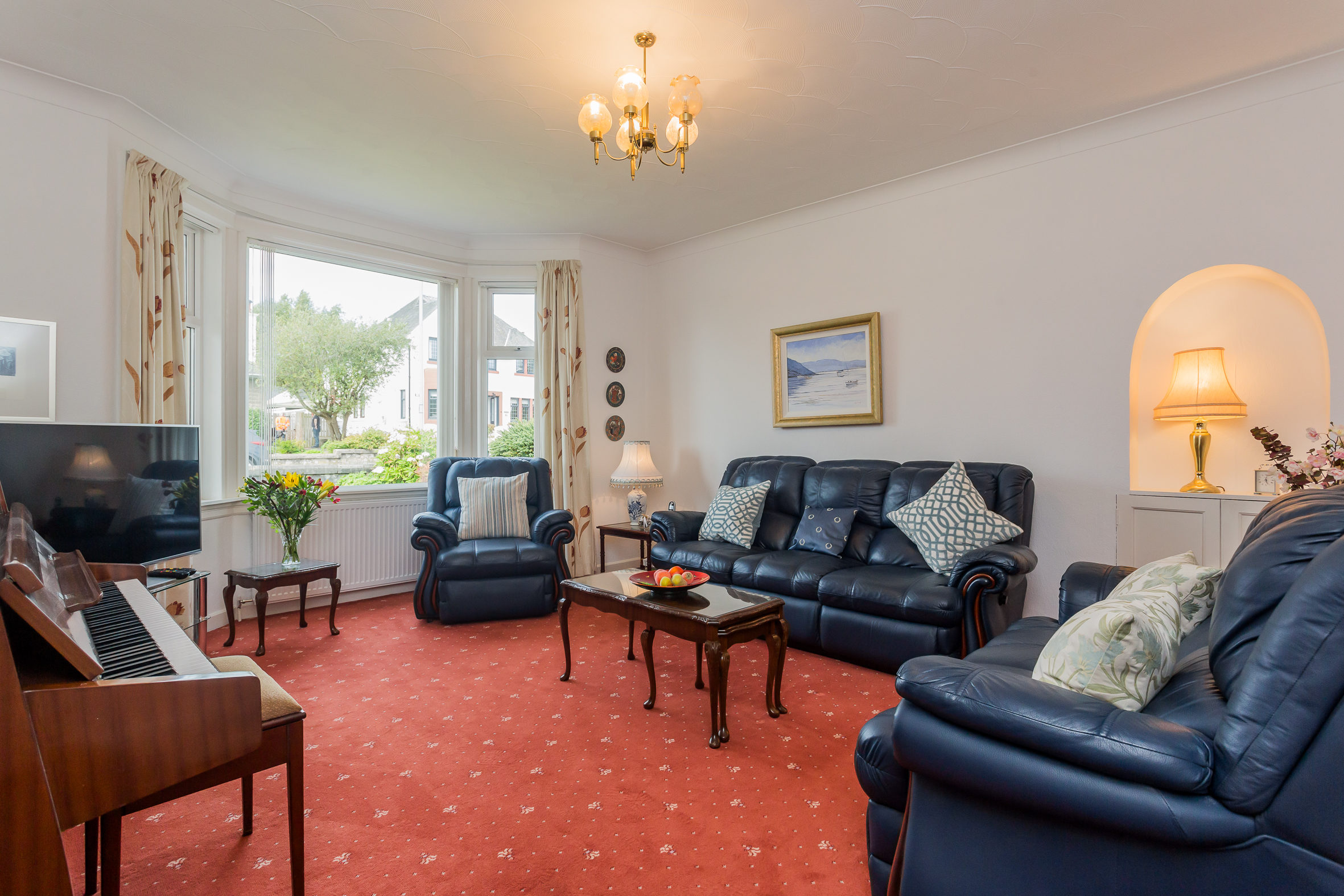 There is a broad and welcoming reception hallway that invites you into the house and accesses the lower apartments and has a stair to the upper level. The principle lounge faces the front of the building and has a bay window allowing in plenty of natural light. On the opposite side of the hall there is a spacious, formal dining room which also has a front facing bay window and original cabinet. The kitchen has a selection of modern units with appliances including an electric hob, free standing fridge and freezer, dishwasher, washer dryer and a double oven stack which includes a combi microwave oven. Bedroom one is on the ground level and has fitted wardrobes and a picture view on the back garden. There is also an office on this level which could be easily utilised as a fourth bedroom if require. The main shower room is on the low half landing and combines a three piece suite. There is a second shower room on the upper level which has a skylight window with a fantastic view of Ralston Golf Course. Completing the accommodation on the upper level are two double bedrooms with dormer windows to the front.