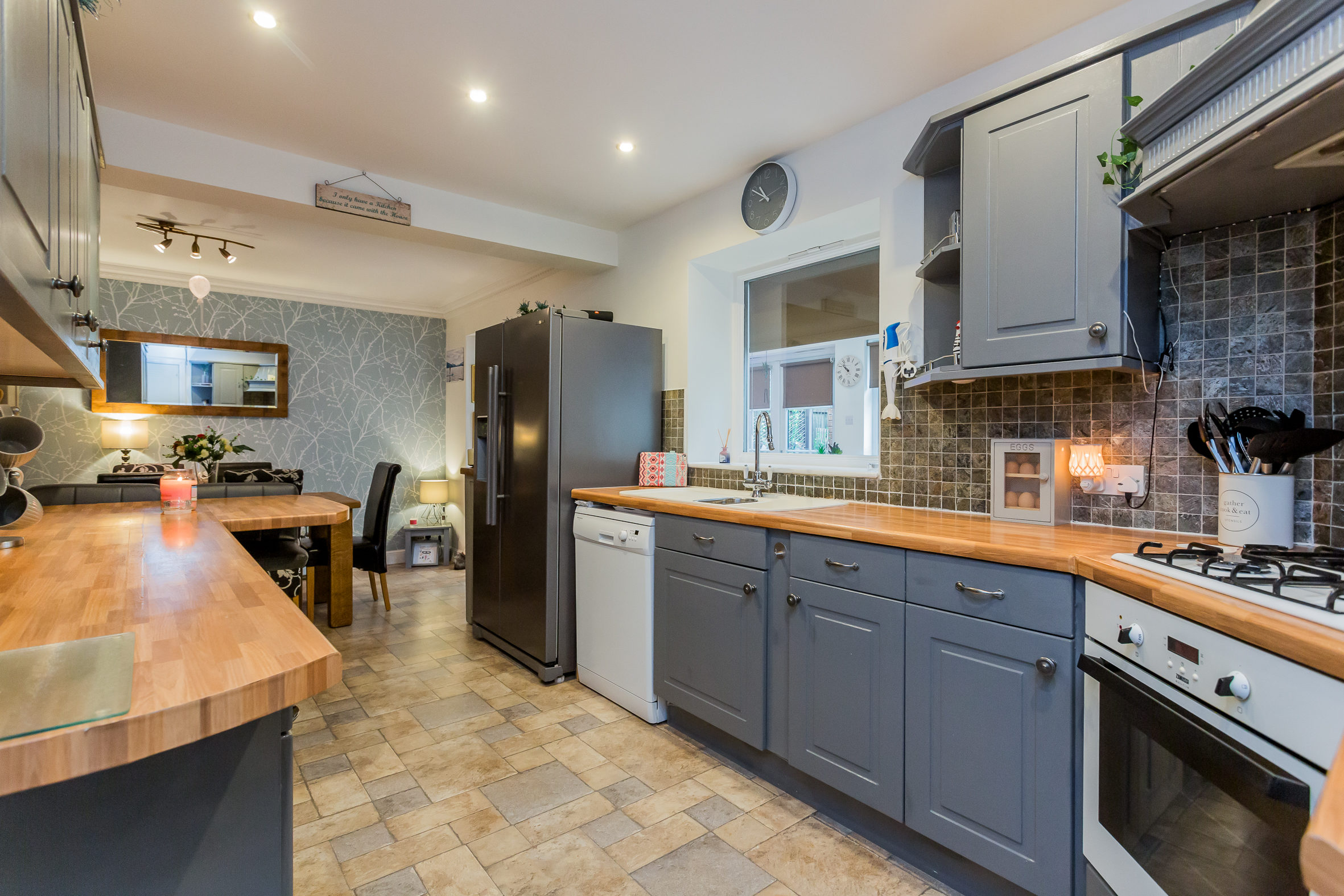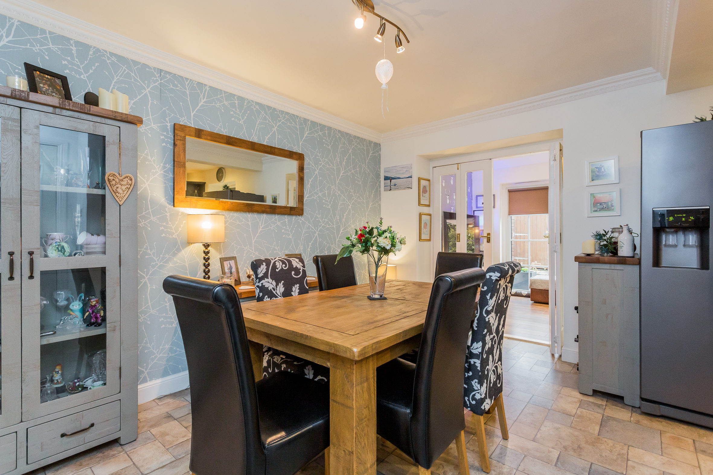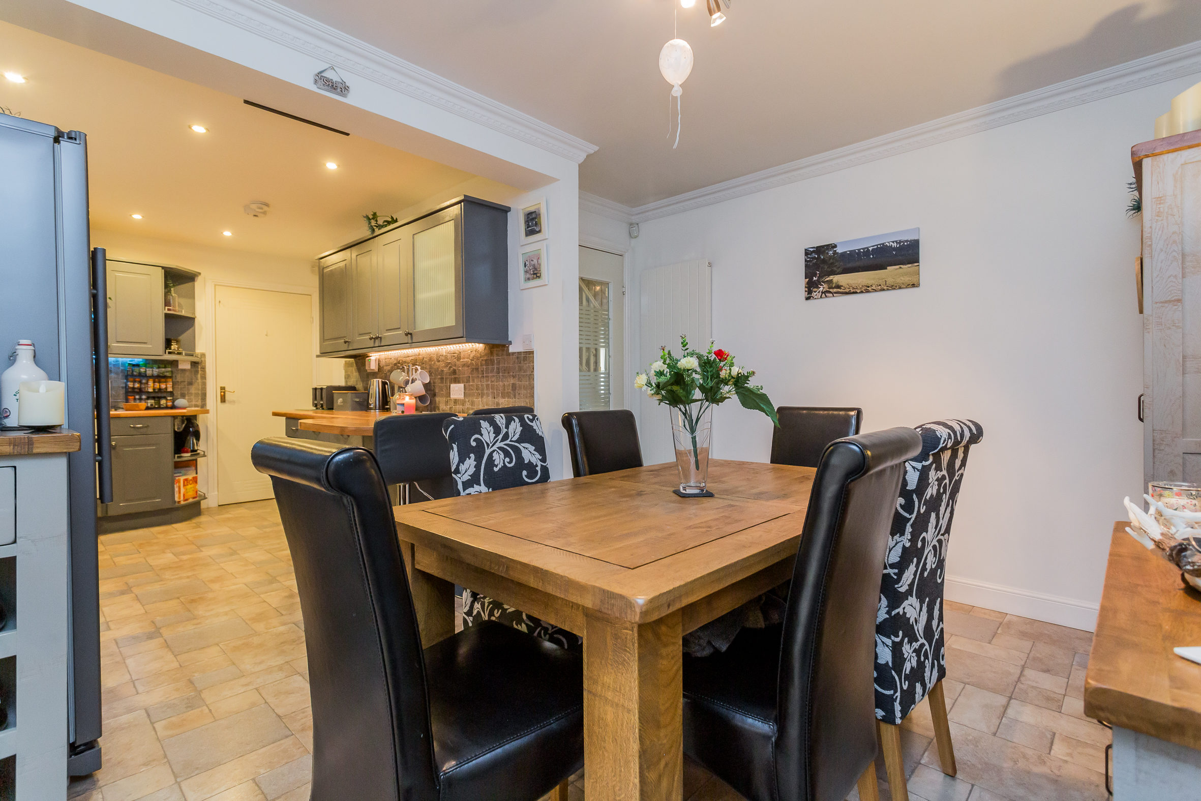 The front door formation opens to the reception hallway with carpeted stairwell to the upper level, the bay window lounge, a sitting room (formerly the garage) and a WC. The dining kitchen can also accommodate casual eating via a breakfast bar and is a fantastic family space. Off here is a separate utility room with door to the garden and a walk-in storage cupboard. From the dining area is a set of bi-fold doors leading to the fantastic sun room that has French doors also leading to the garden with windows on both elevations and a Velux window providing further natural light. On the upper level there are four bedrooms and a family bathroom.
