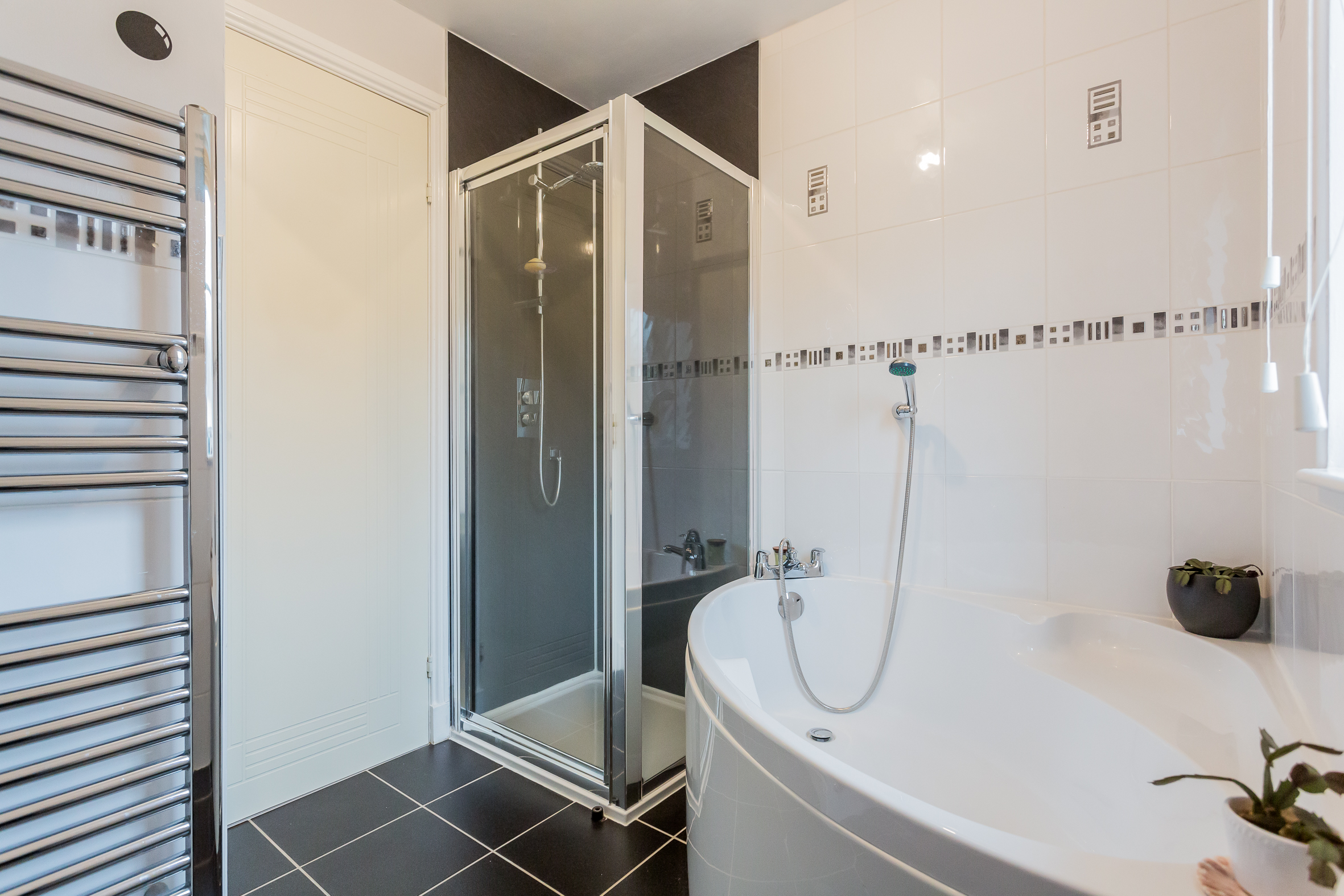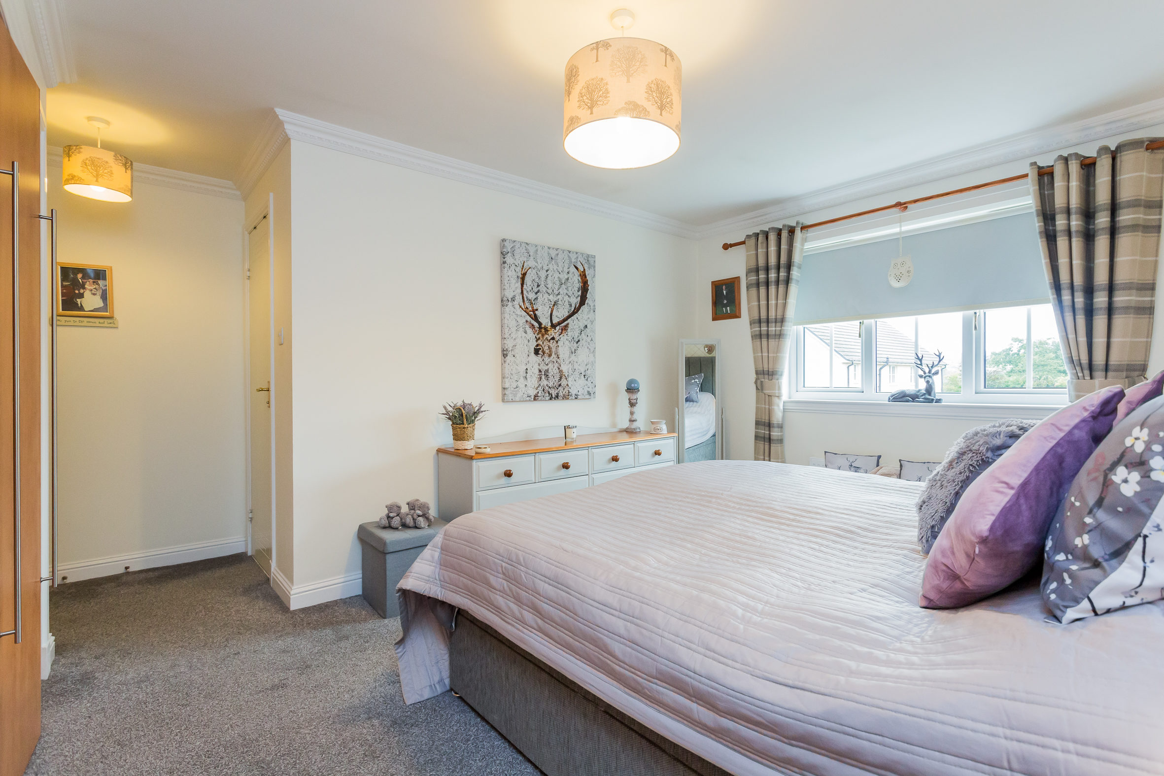 The principal bedroom benefits from a contemporary en-suite shower room and double fitted wardrobes. Bedrooms two and three are also well proportioned double rooms with built in fitted wardrobes. The family bathroom has a feature corner bath and separate shower cubicle with WC and wash hand basin.