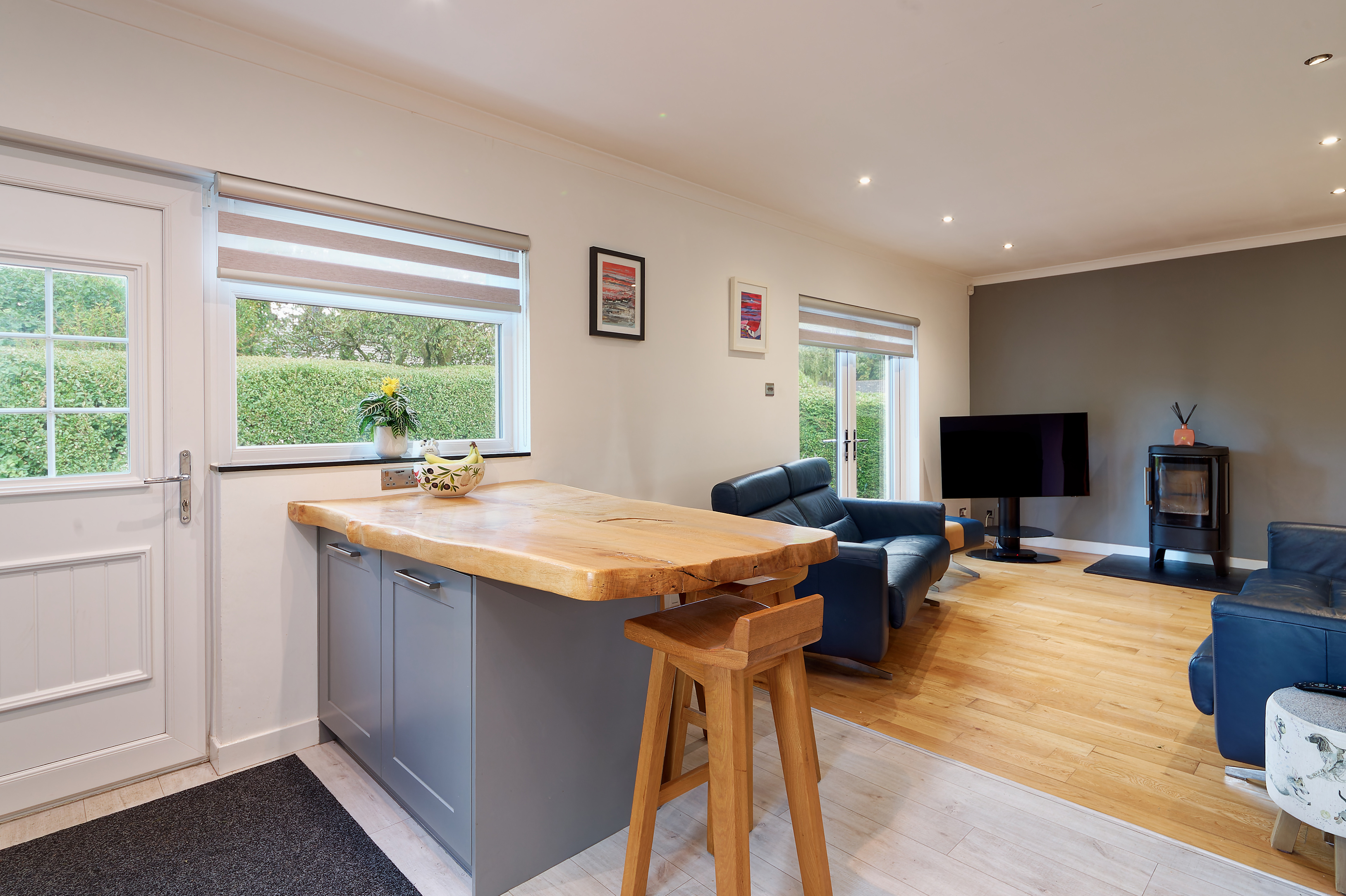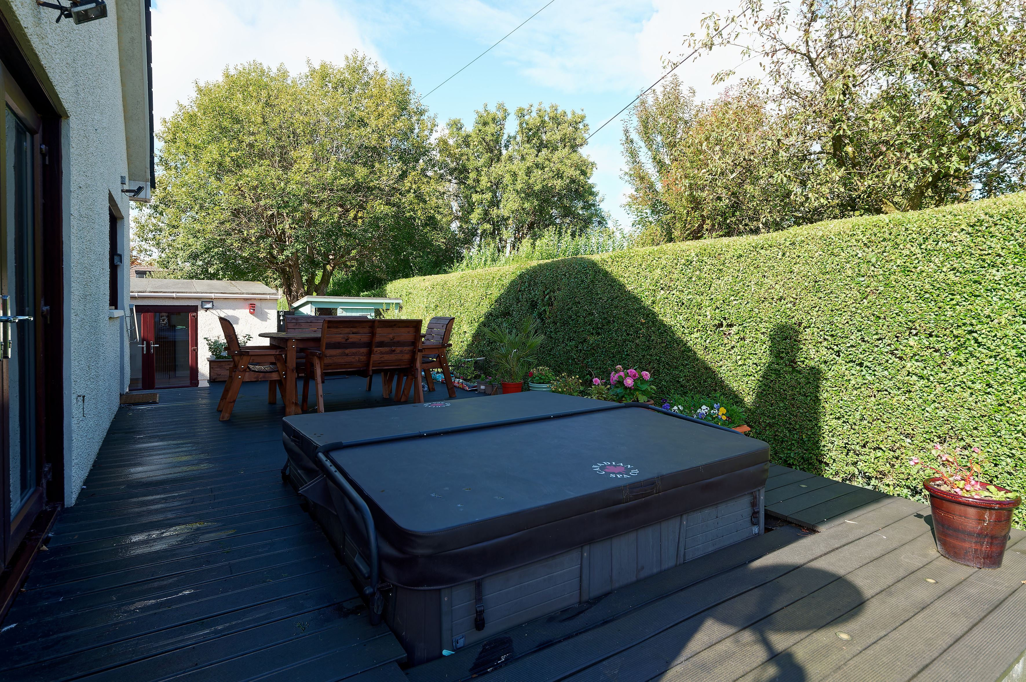 The gardens are extremely private with the rear enjoying a composite deck area with inset hot tub. The lawn extends from front to side and is all bordered by mature planting and hedgerow.