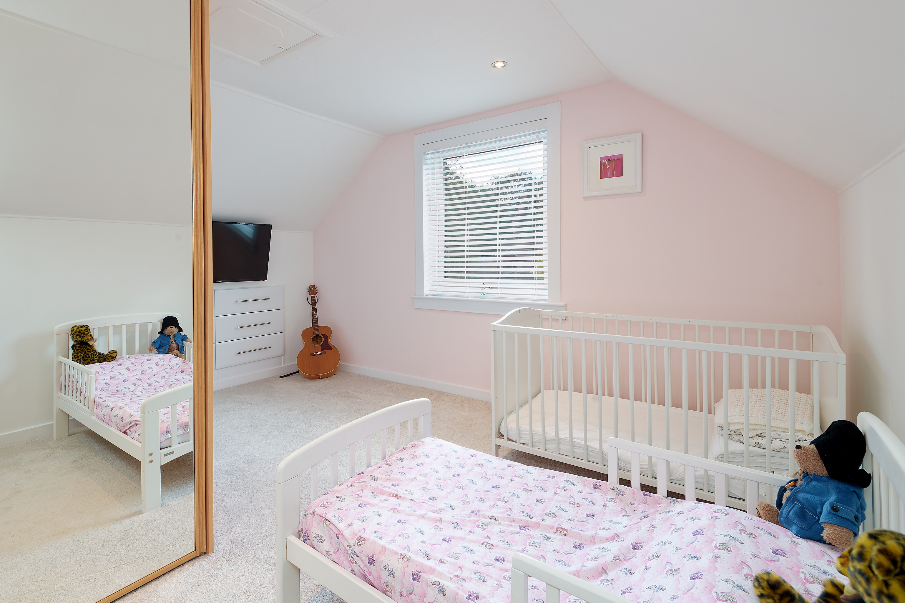 An open tread carpeted stairwell leads to three double bedrooms and a fully tiled shower room. There is fantastic eave storage and two of the bedrooms benefit from built-in fitted wardrobes.