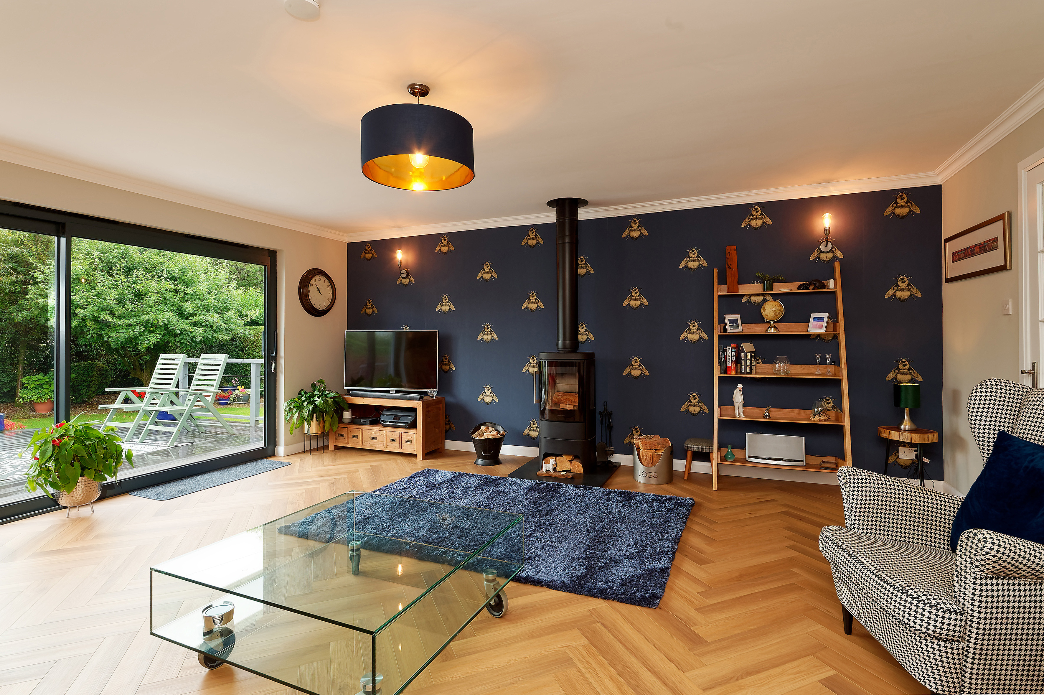 The undoubted feature of this captivating home is the living dining kitchen. Clearly the hub of the home, there is space for casual breakfasting via the central kitchen island or space for a dining table and family/tv area. There are quality wall & base units including larder and integrated appliances which include a washing machine, dishwasher, and wine cooler. Cooking is provided via an electric Everhot stove incorporating hotplates, multiple ovens and double induction hob. It is completed with an integrated extractor hood.