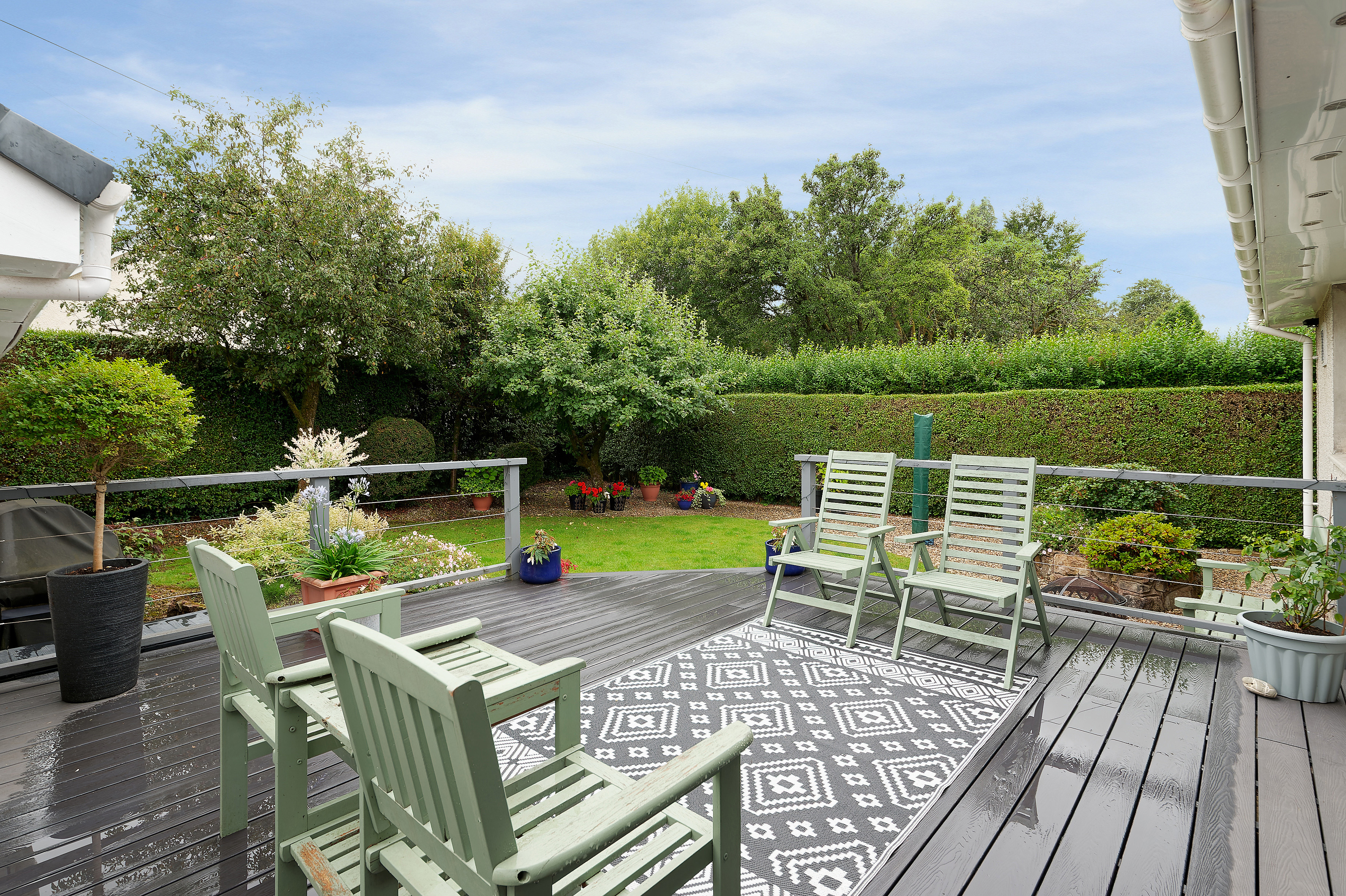 The gardens are private with the composite deck and lawn to the rear accessed directly from the lounge. They are well stocked with mature trees and shrubs.