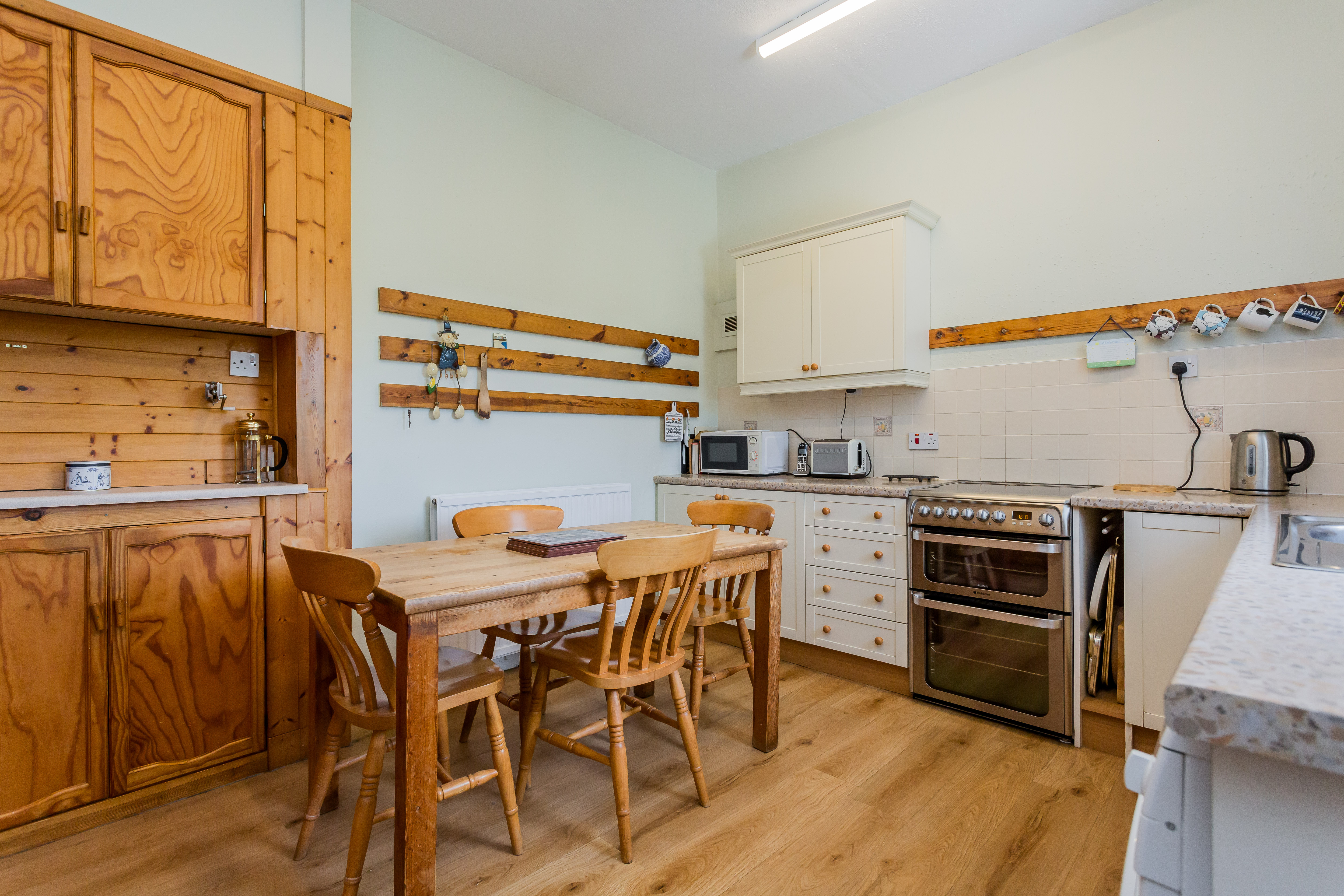 rear is a sitting room, shower room and dining kitchen. A rear porch has a door