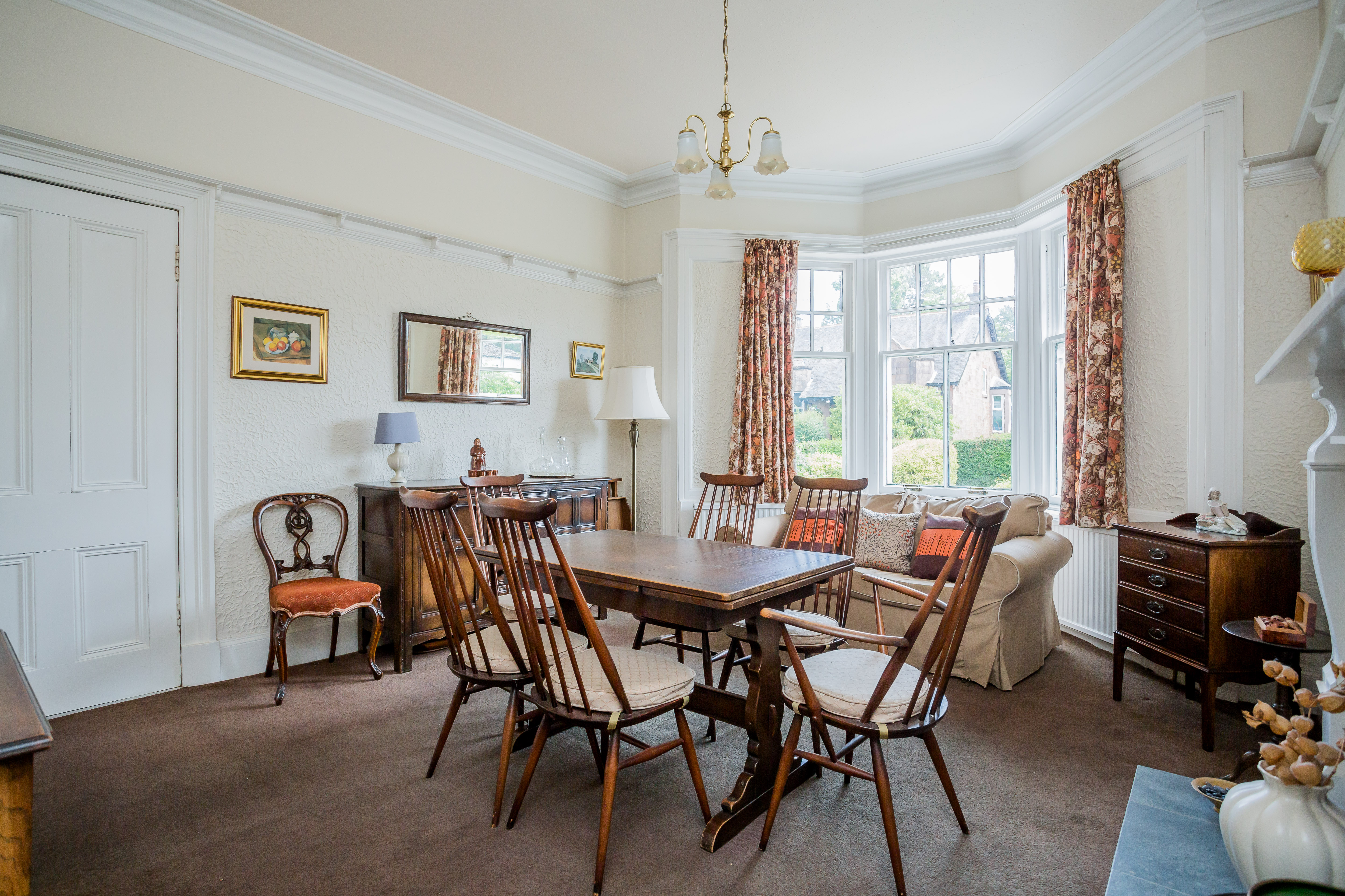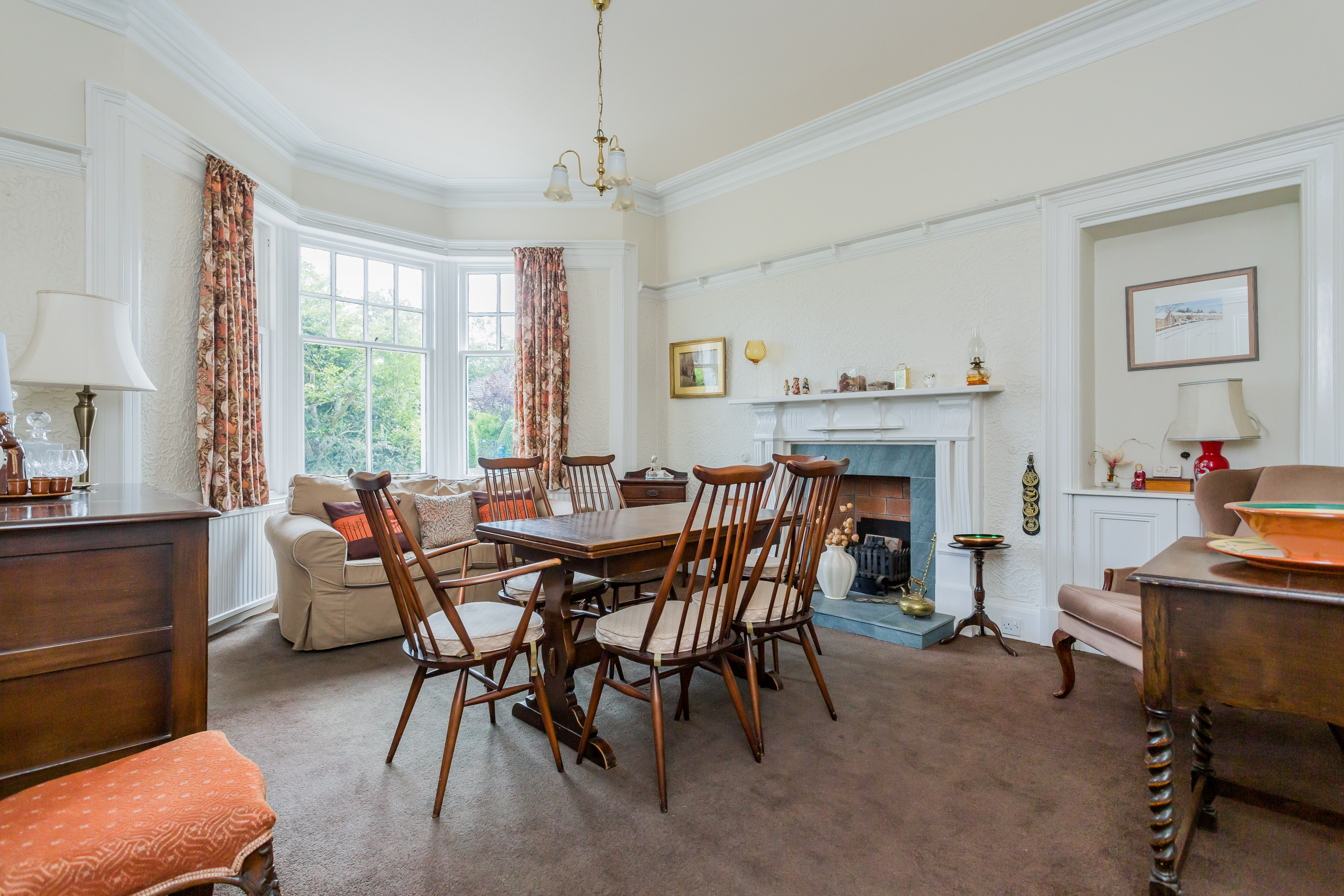 To the front are a formal bay dining room with feature fireplace incorporating a