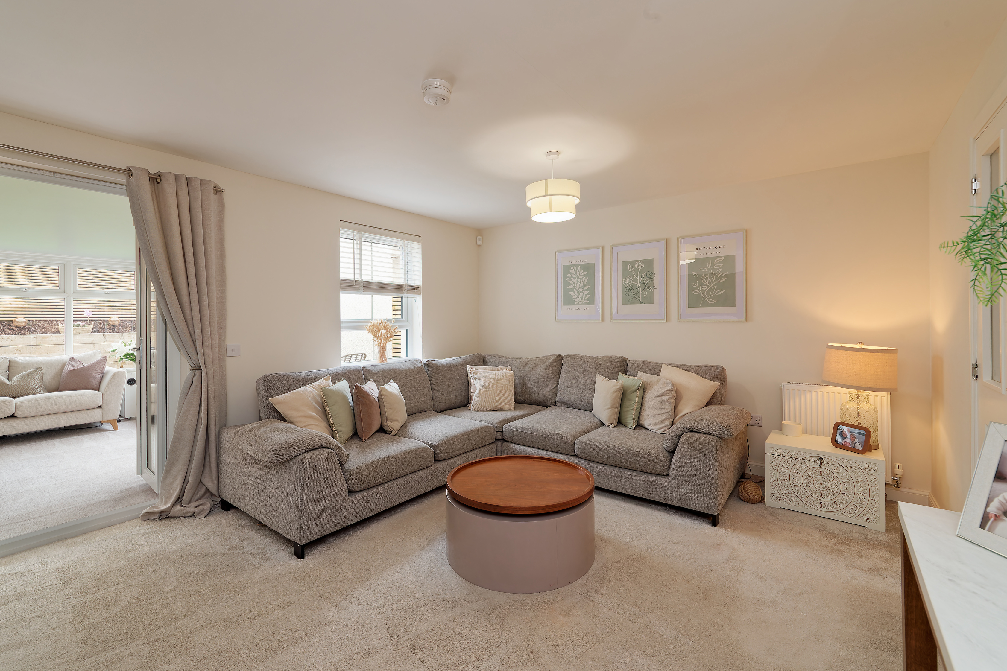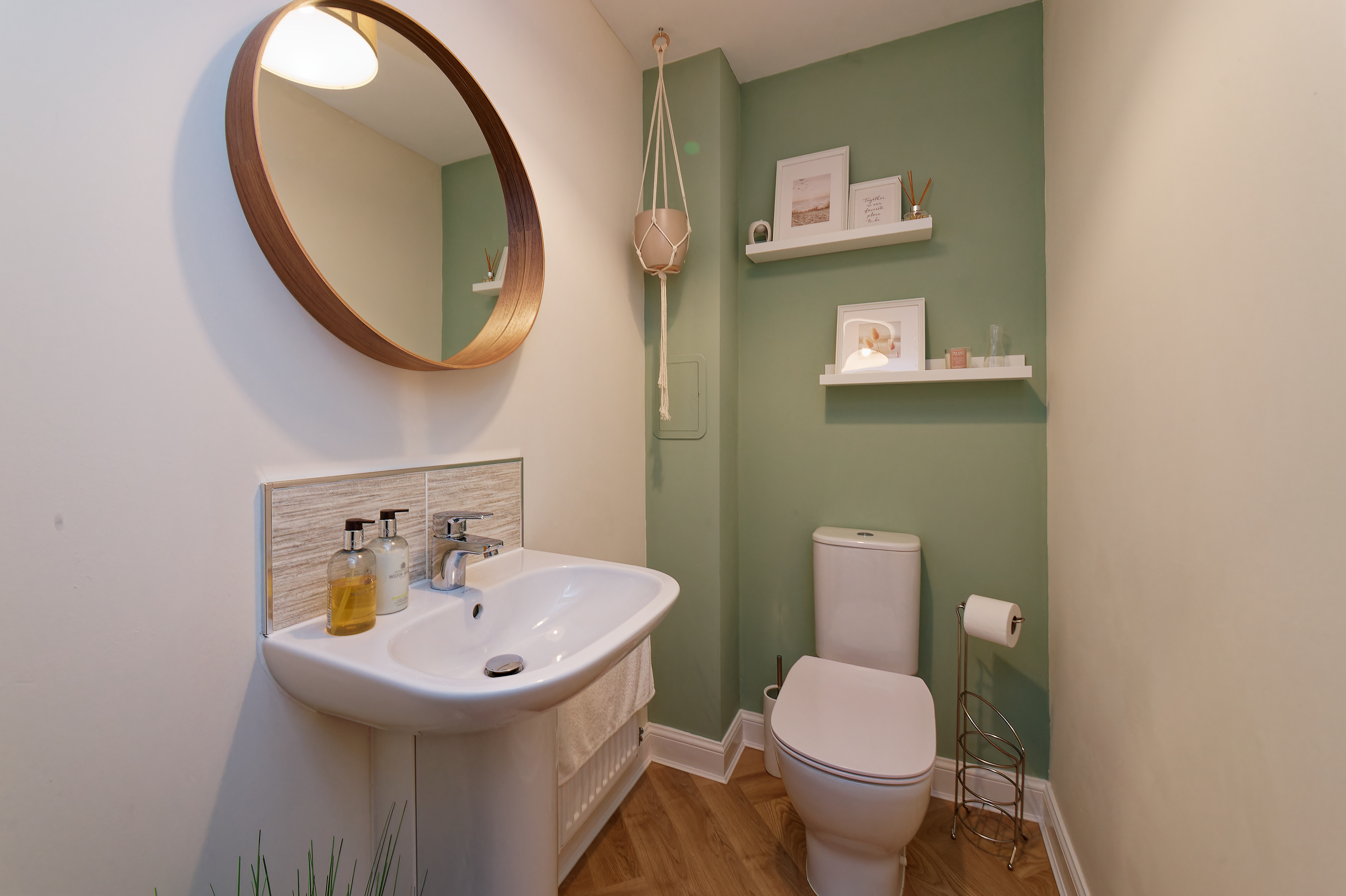 Situated overlooking greenspace this three level property could be used as the show home it is so beautifully presented internally and externally. The reception hallway has a carpeted stairwell to all three levels. The contemporary kitchen is to the front and has integrated appliances that include oven, hob, extractor hood, washing machine, fridge freezer and dishwasher. The lounge is to the rear and has a media wall and French doors leading to a fabulous sunroom and the rear garden. Completing the ground floor is the cloakroom with WC and wash hand basin.