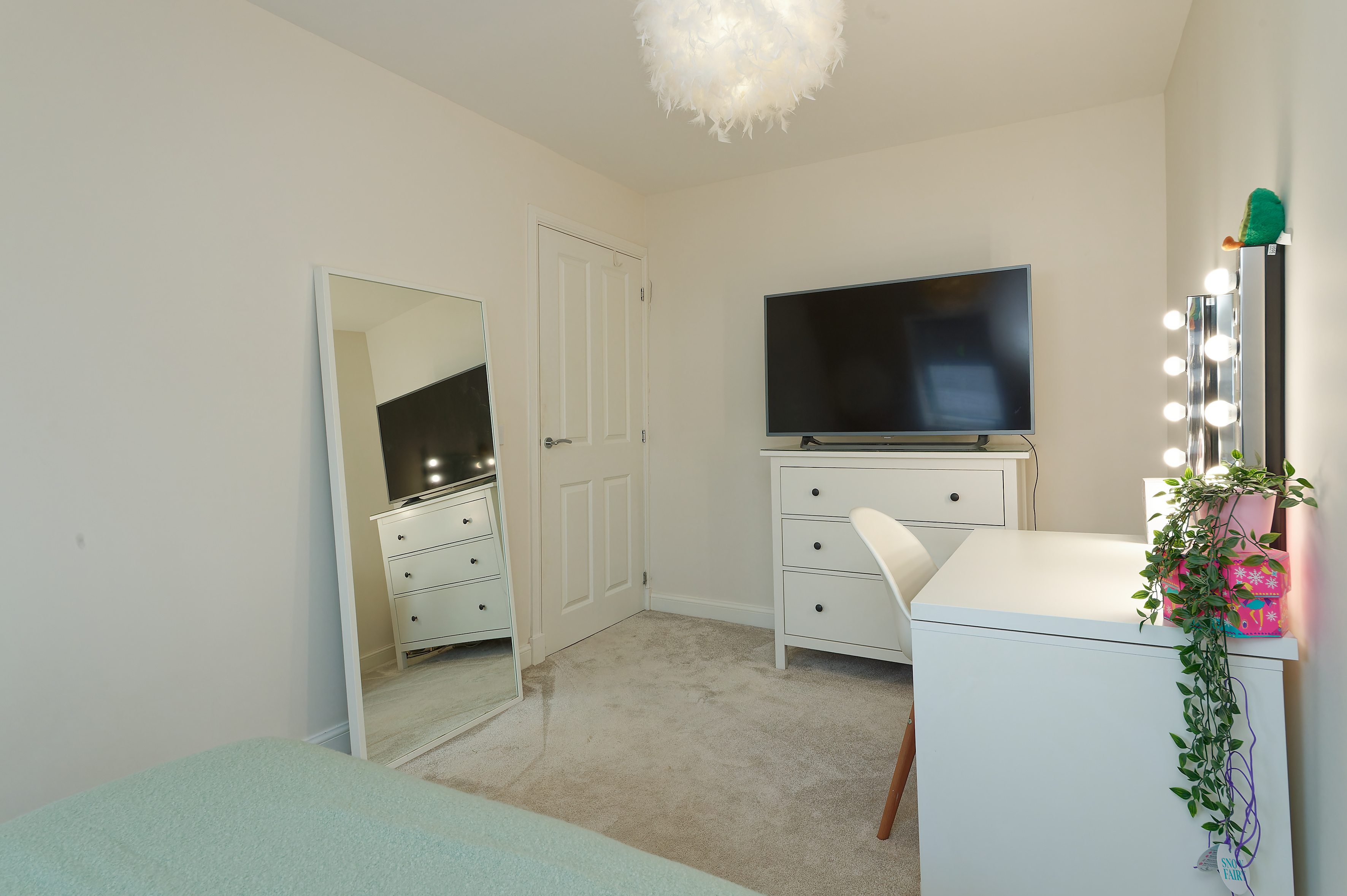 Externally there is a stone chipped area to the front and a monobloc driveway running adjacent to the property to a single garage. The landscaped rear garden is beautifully maintained with a blend of deck & artificial grass bordered by and sleeper planters with shrub beds and timber fencing.