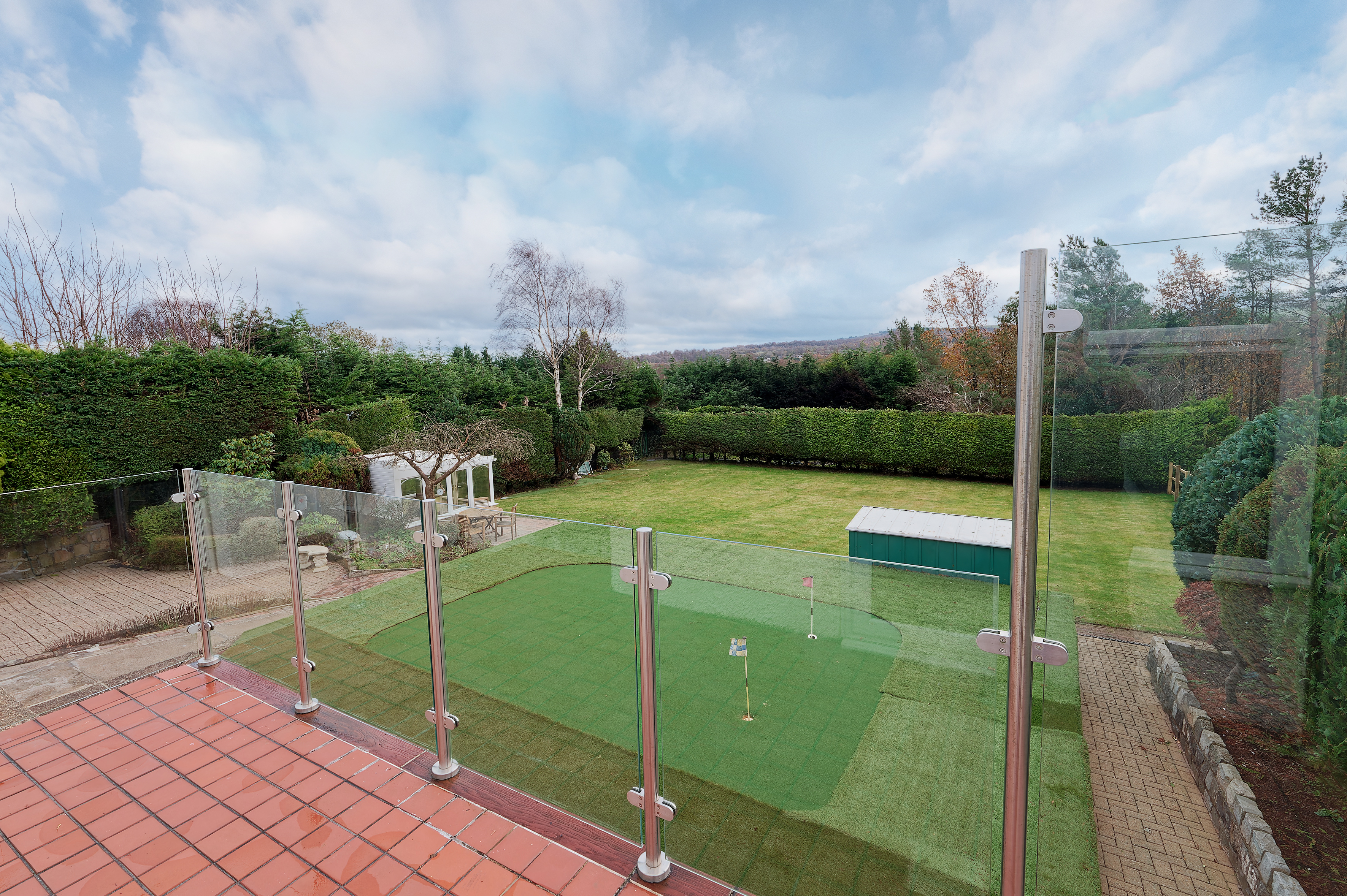 The outstanding feature of Roshven is the extensive garden grounds. The gated entrance leads to an extensive monobloc driveway that leads to a double detached garage and car port. To the rear as you step down via the flagstone steps to the side you cannot fail to be impressed as the two-tier garden becomes apparent with its artificial putting green and patio down towards the extensive lawn. There is also a summer house to enjoy the peace and tranquillity the garden enjoys. To the rear of the property cellarage provides further storage which is easily accessible as is a gardeners loo under the conservatory.